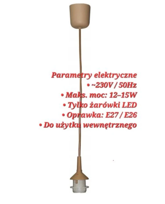 Montaż: standardowy uchwyt sufitowy (żarówka nie w zestawie),