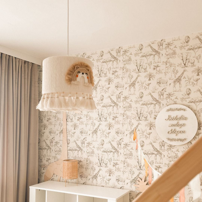 Lampa „Król Lew” od Marmys Felt Studio to wyjątkowy element wystroju, który łączy artystyczną pracę ręczną z funkcjonalnością. Dzięki neutralnym kolorom, motywowi safari i możliwości regulacji zawieszenia świetnie sprawdzi się w pokoju dziecięcym, dodatkowo stając się piękną dekoracją nawet wtedy, gdy światło jest wyłączone.