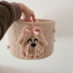 Lampa sufitowa „Piesek York” to ręcznie wykonana lampa z filcu i makramy z uroczym motywem yorka. Idealna do pokoju dziecka w stylu boho i miłośników zwierząt.
