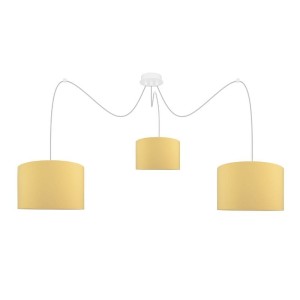 Oryginalna lampa pajączek do pokoju dziecka z trzema punktami świetlnymi i abażurami 38 cm. Abażury mogą być identyczne lub różne, w stonowanych kolorach lub wyrazistych barwach, także w stylu boho z juty. Regulowane ramiona 150 cm, możliwość wersji dwuobwodowej. Idealna do dużych i małych przestrzeni.
