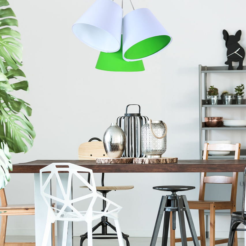 Lampka wisząca do pokoju dziecka potrójna Biało Zielona Sandra