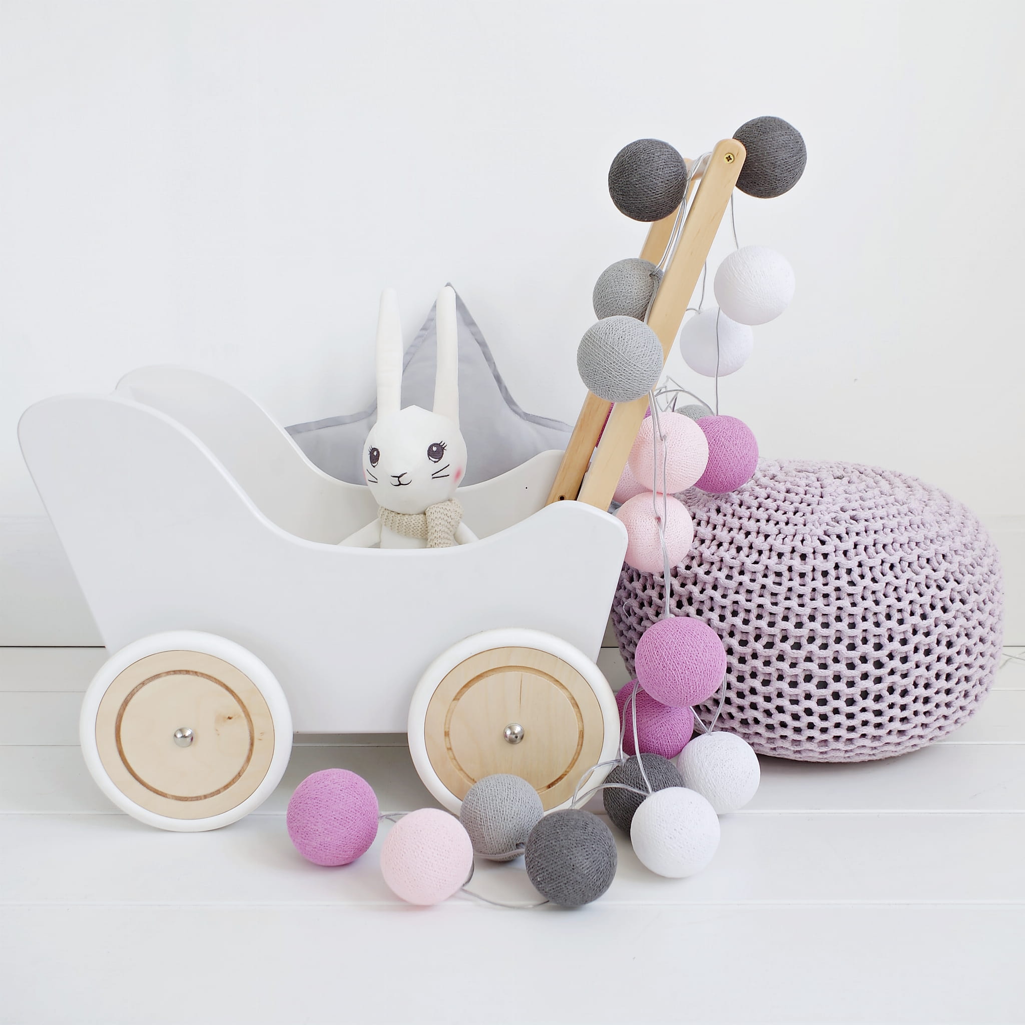 Lampki dziecięce Cotton Balls to efektowne kule LED, które wprowadzają do pokoju dziecka przytulny, magiczny klimat. Dostępne w wielu kolorach oraz rozmiarach, idealnie sprawdzają się jako dekoracja ścienna, oświetlenie przy łóżku lub nastrojowe światło do zabawy i odpoczynku. Naturalna bawełniana struktura kulek tworzy miękkie, rozproszone światło, które buduje ciepłą aurę w każdym wnętrzu.