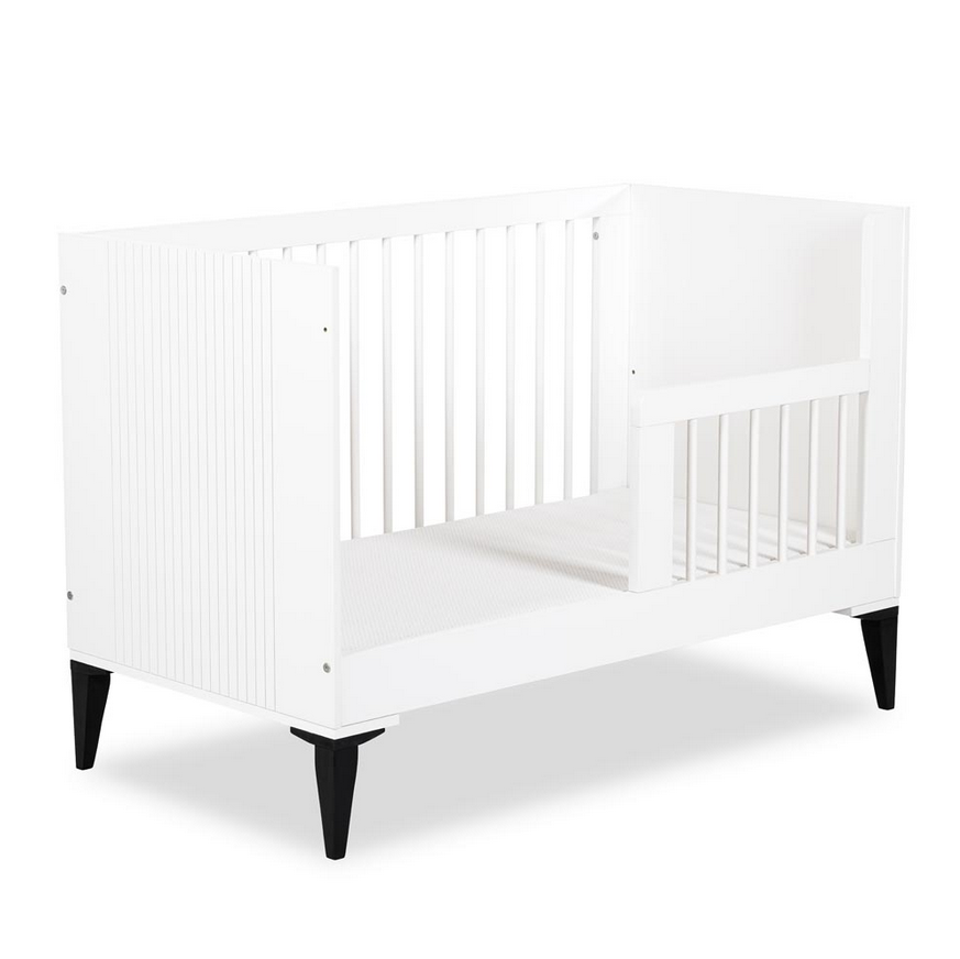 Istnieje możliwość wyboru wariantu z barierką, dzięki czemu łóżeczko może pełnić funkcję pierwszego łóżka dla starszego dziecka, zwiększając jego samodzielność i bezpieczeństwo.
