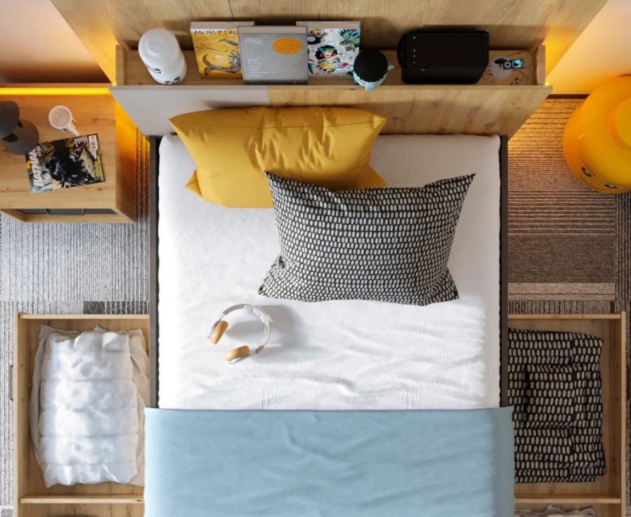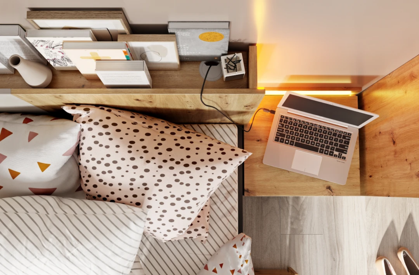 - Łóżko Qubic QB‑12 90cm – funkcjonalne i nowoczesne łóżko młodzieżowe z LED