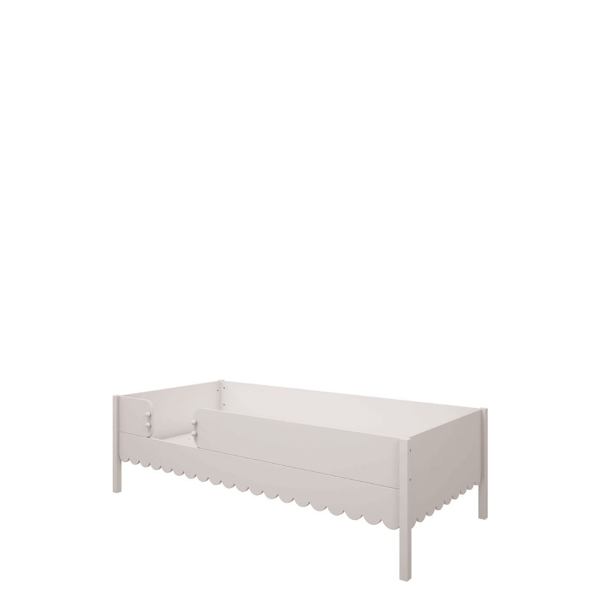 Łóżko Babushka w stylu retro w kolorze Białym z kolekcji mebli dziecięcych Babushka to funkcjonalne i estetyczne rozwiązanie do pokoju dziewczynki, które łączy bezpieczeństwo i unikalny styl.