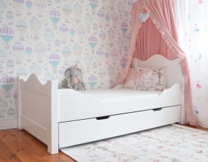 Łóżko wyposażone jest w pojemną szufladę, która pozwala na wygodne przechowywanie: