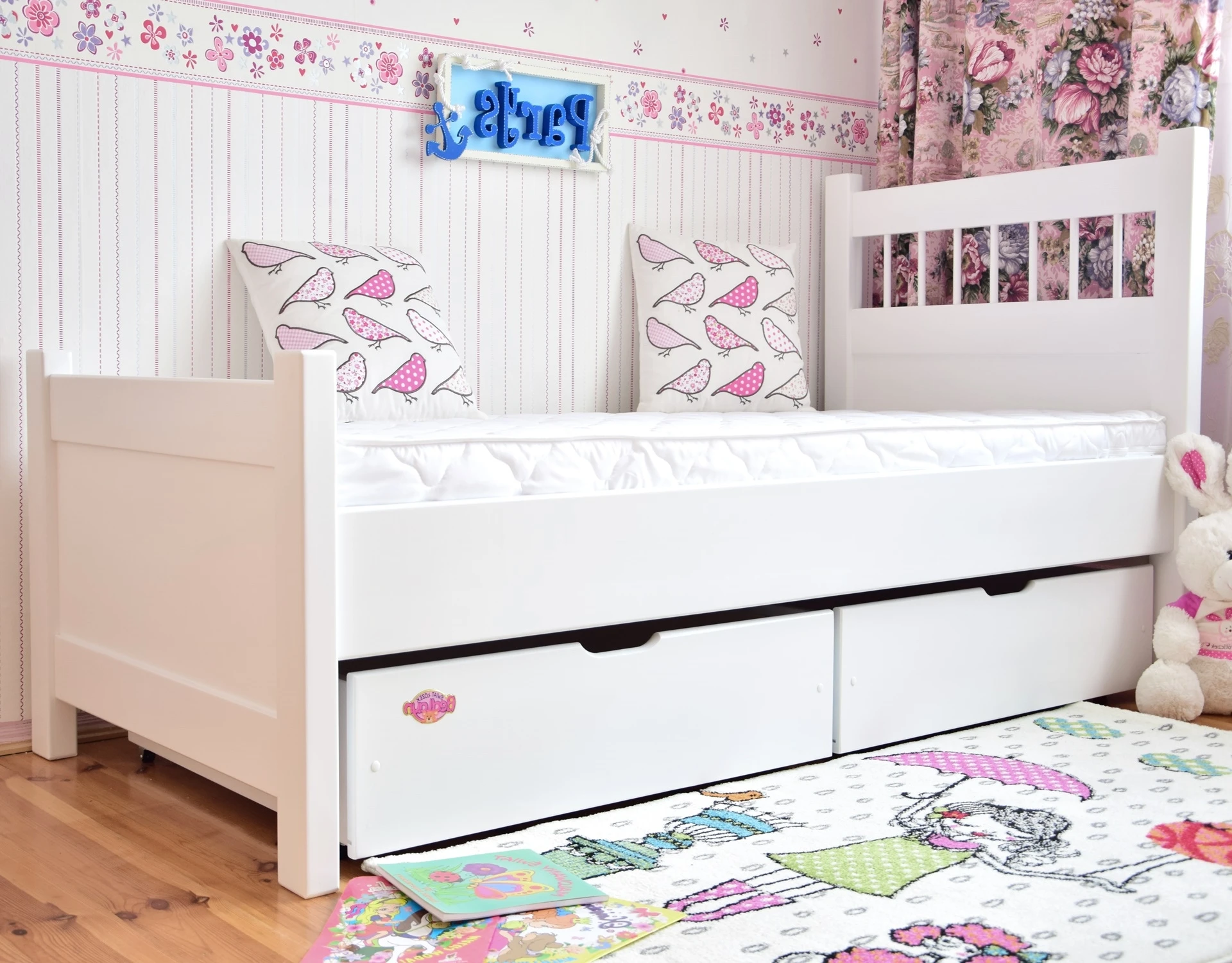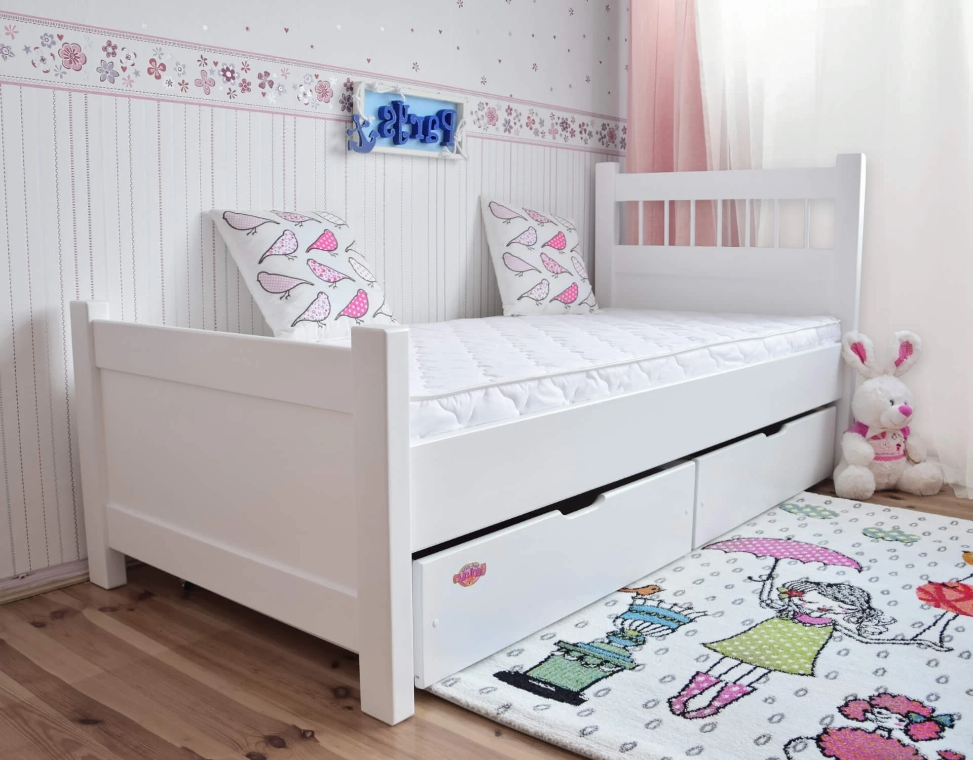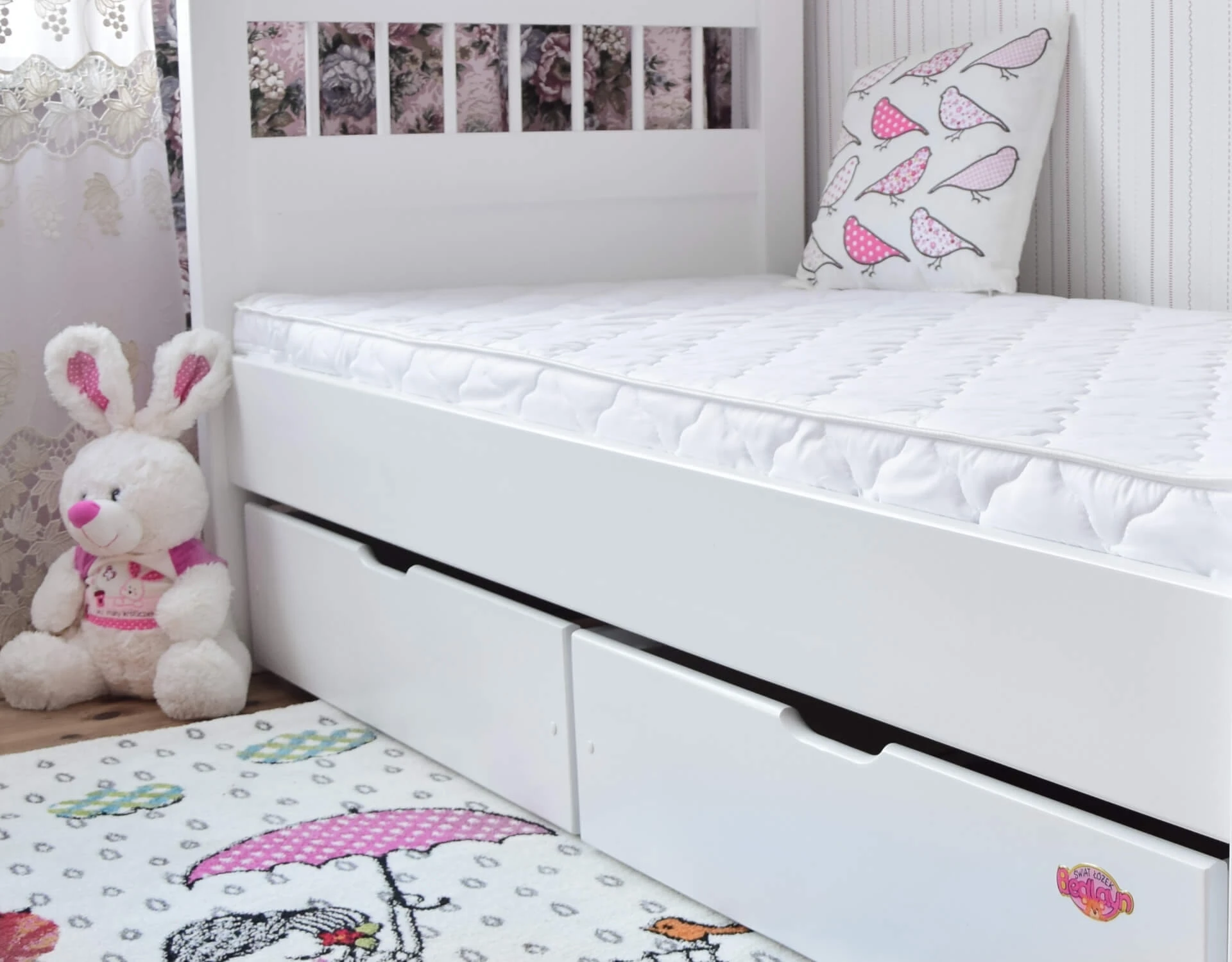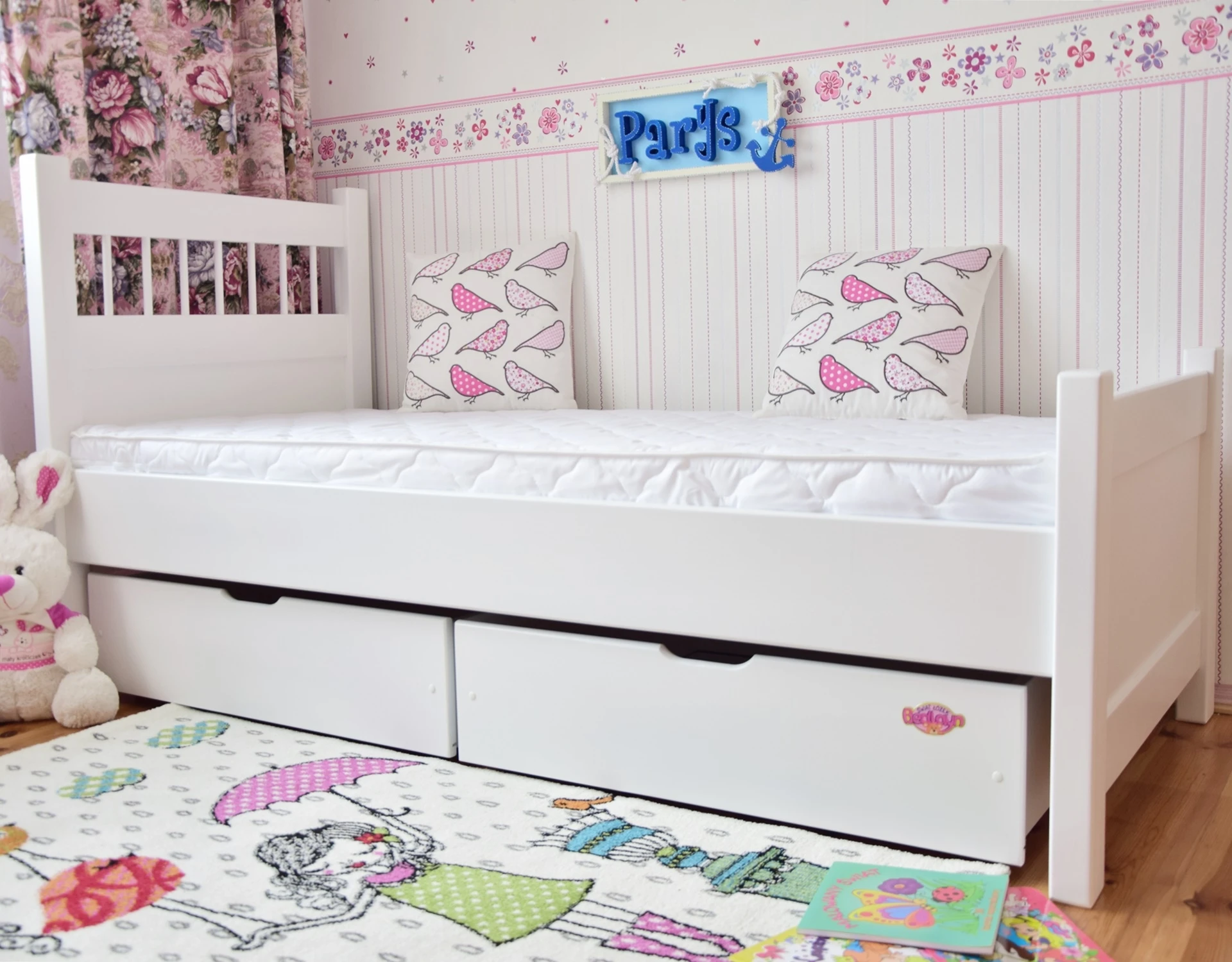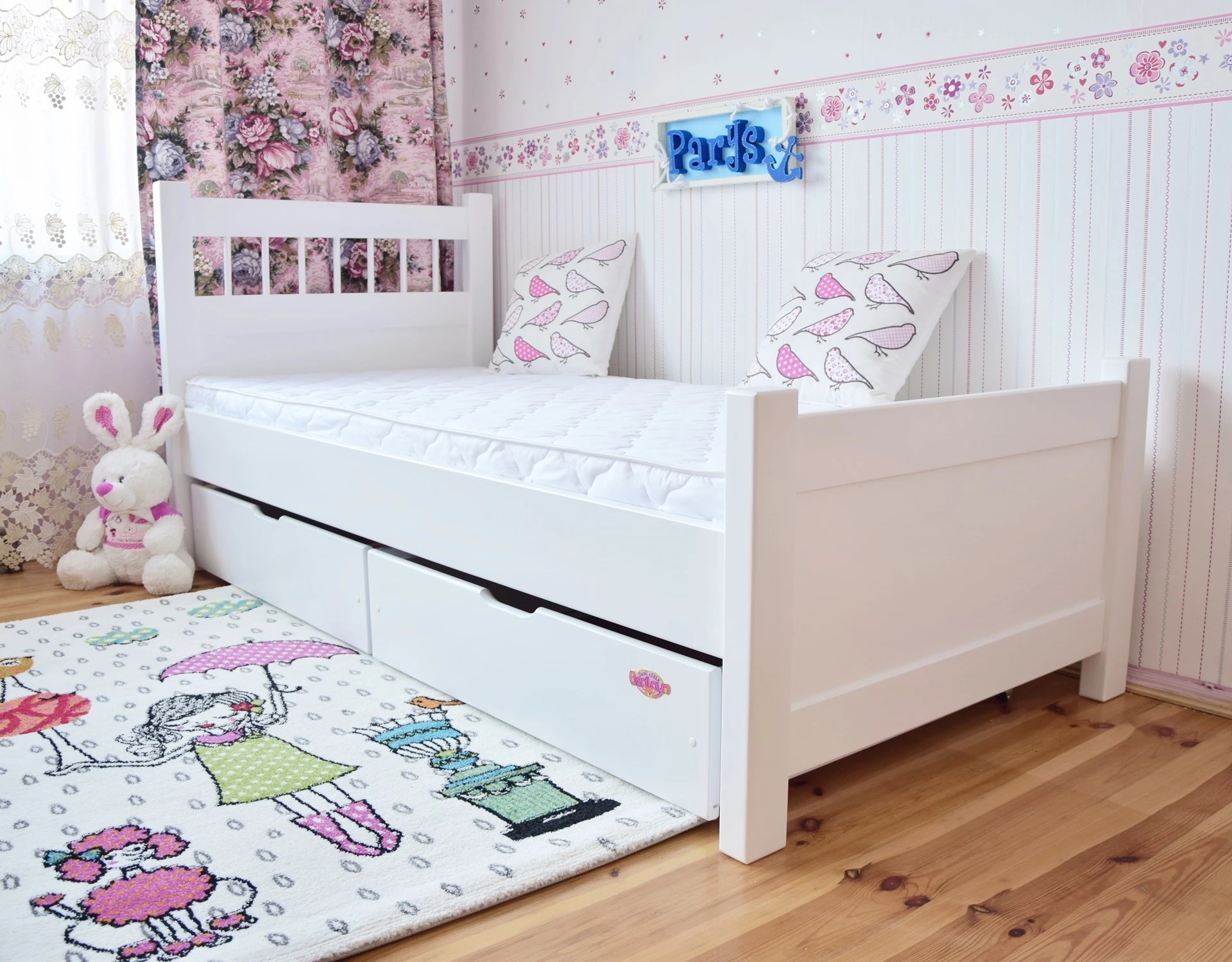Łóżko drewniane młodzieżowe PARYS białe z szufladami
