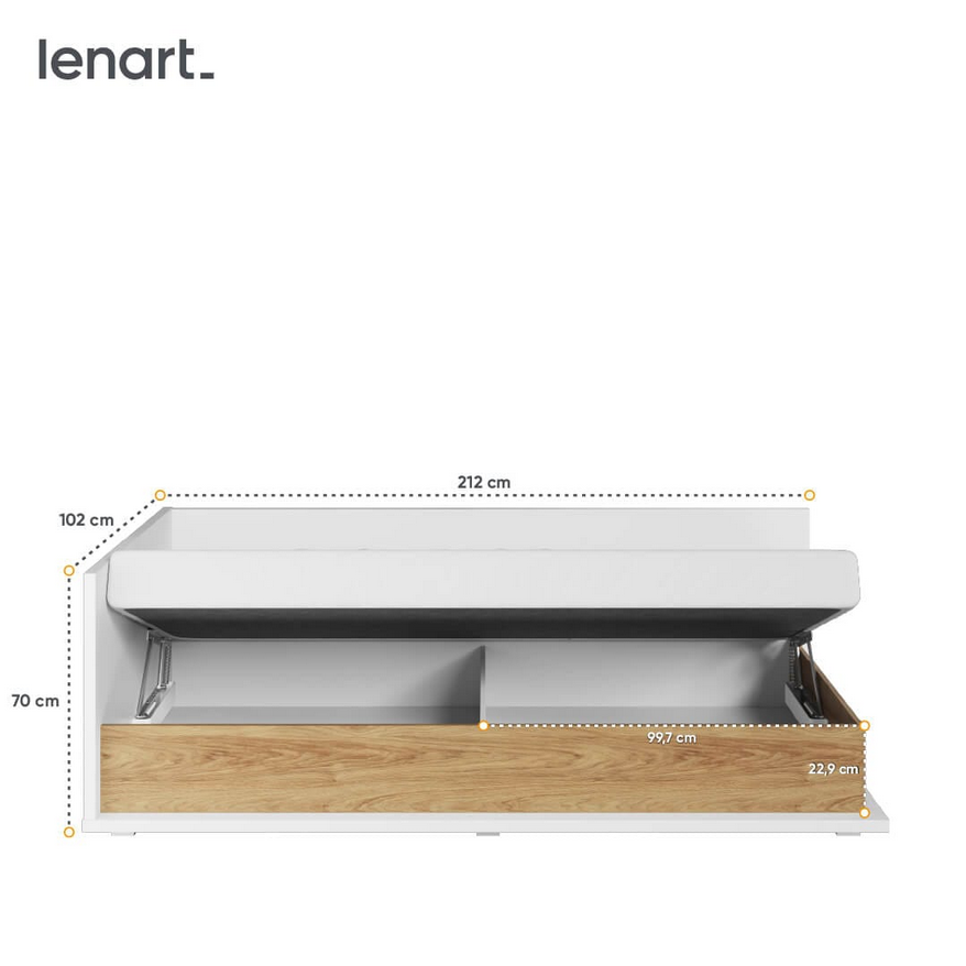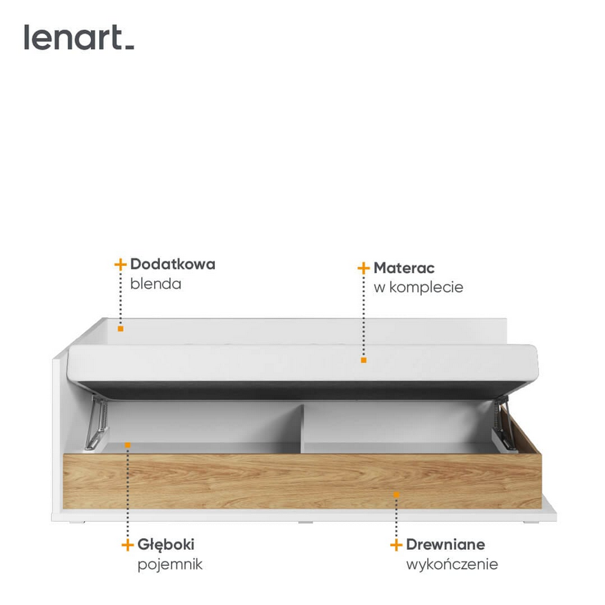 Łóżko młodzieżowe SIMI– z pojemnym schowkiem i materacem bonellowym