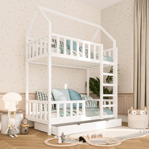 Łóżko piętrowe domek Franio dla dzieci | drewniane łóżko dziecięce bezpieczne i funkcjonalne