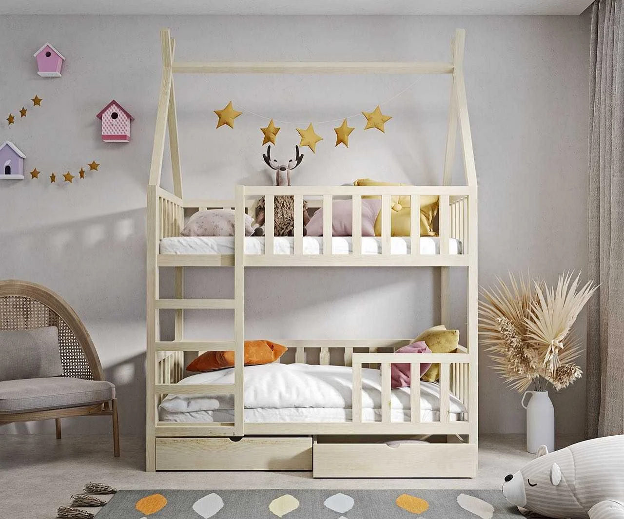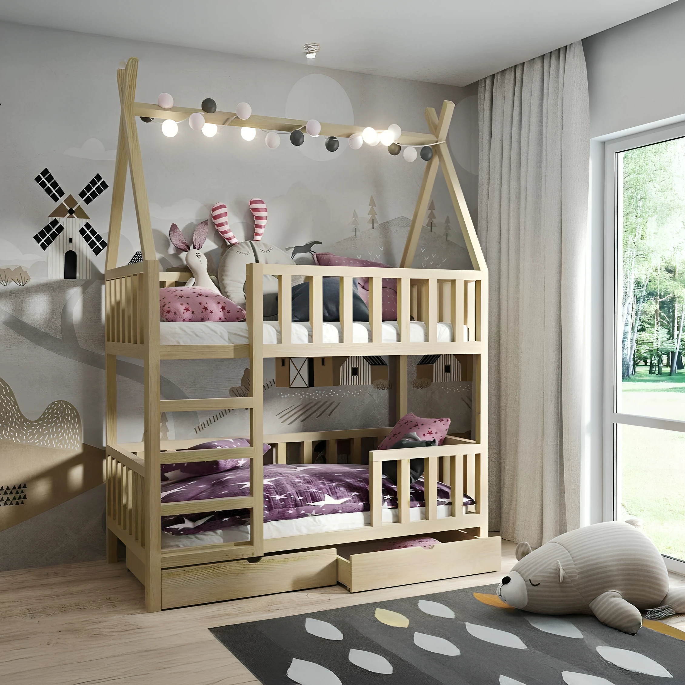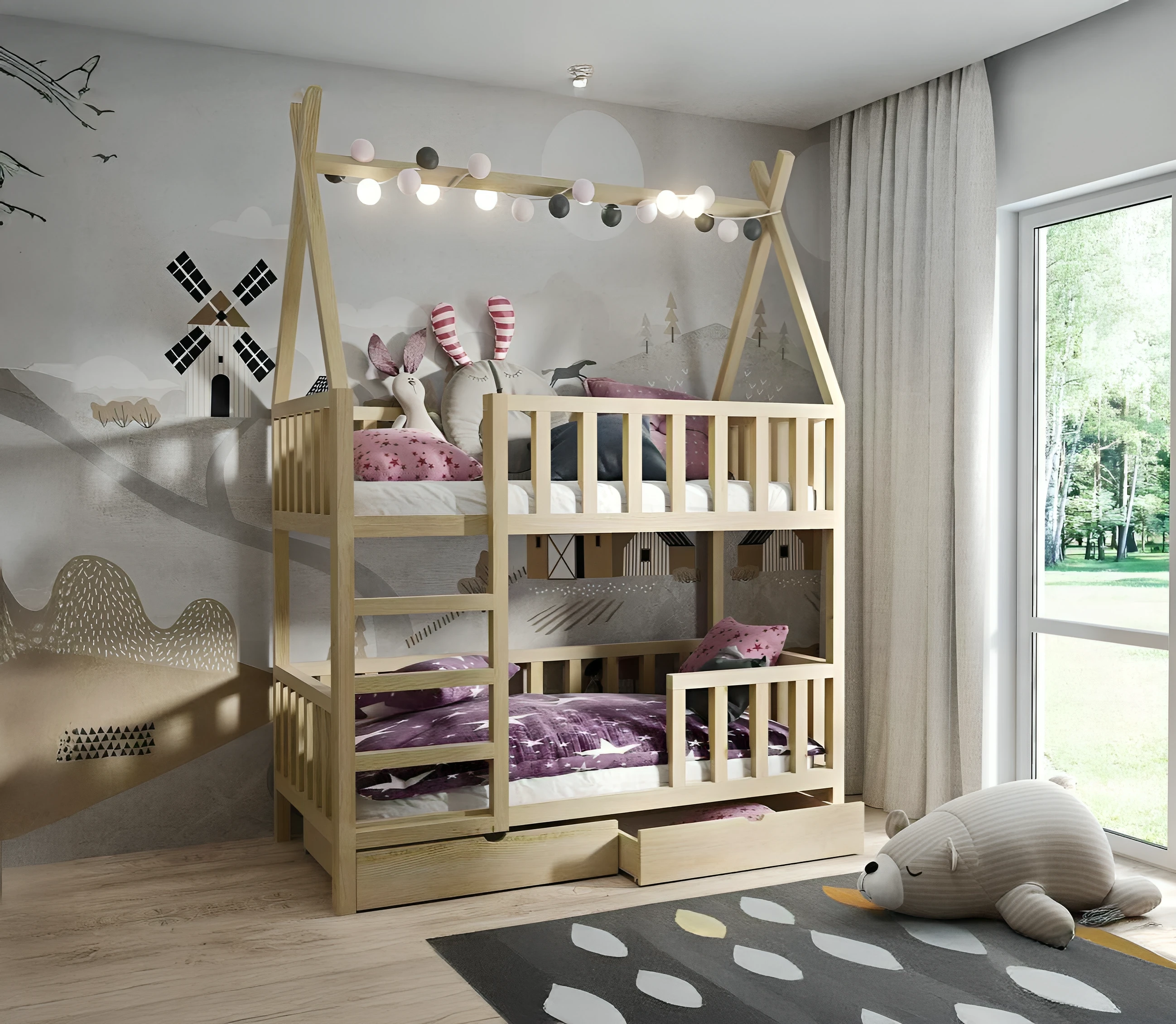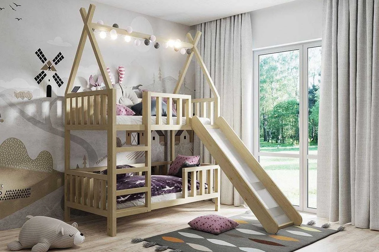Łóżko piętrowe drewniane dla dzieci – model Tipi Ola