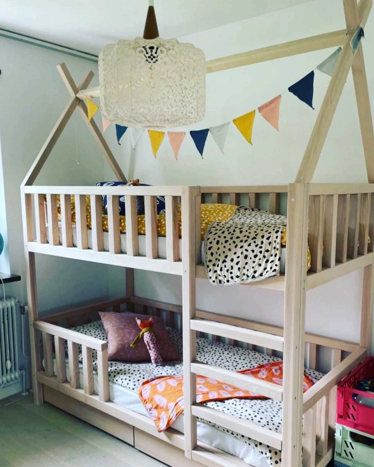 Łóżko piętrowe dla dzieci Tipi Ola oferuje praktyczne rozwiązania: