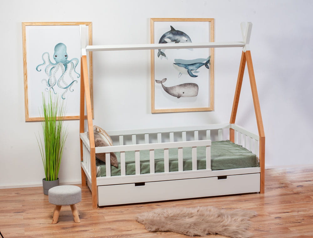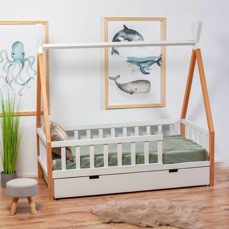 Łóżko tipi Montessori dla dzieci – drewniane łóżko domek