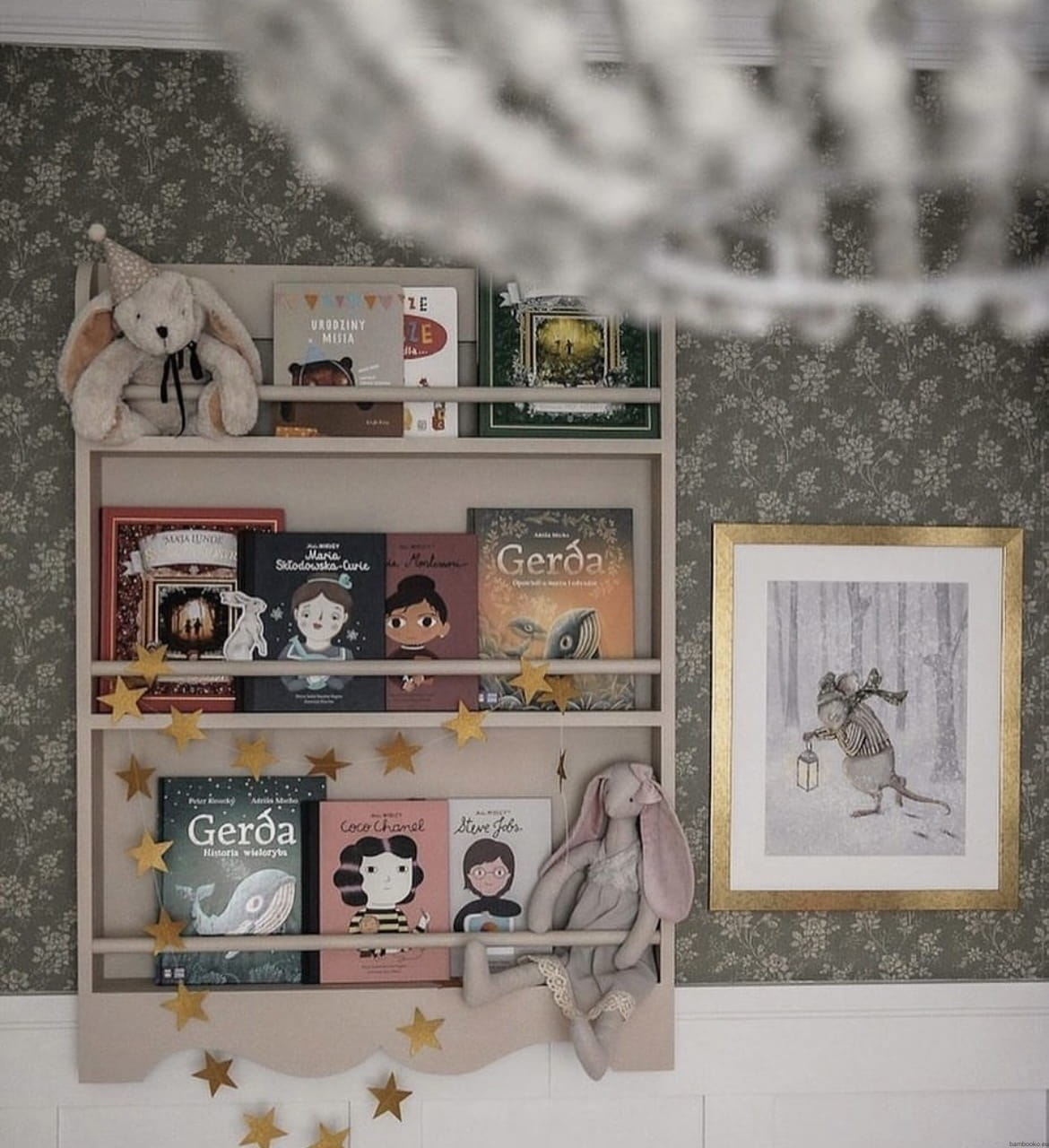 Wisząca drewniana biblioteczka dziecięca z rustykalnym wzorem to więcej niż tylko miejsce na książki. To mebel, który wnosi do pokoju dziecka ciepło, styl i inspirację do codziennego odkrywania świata literatury.