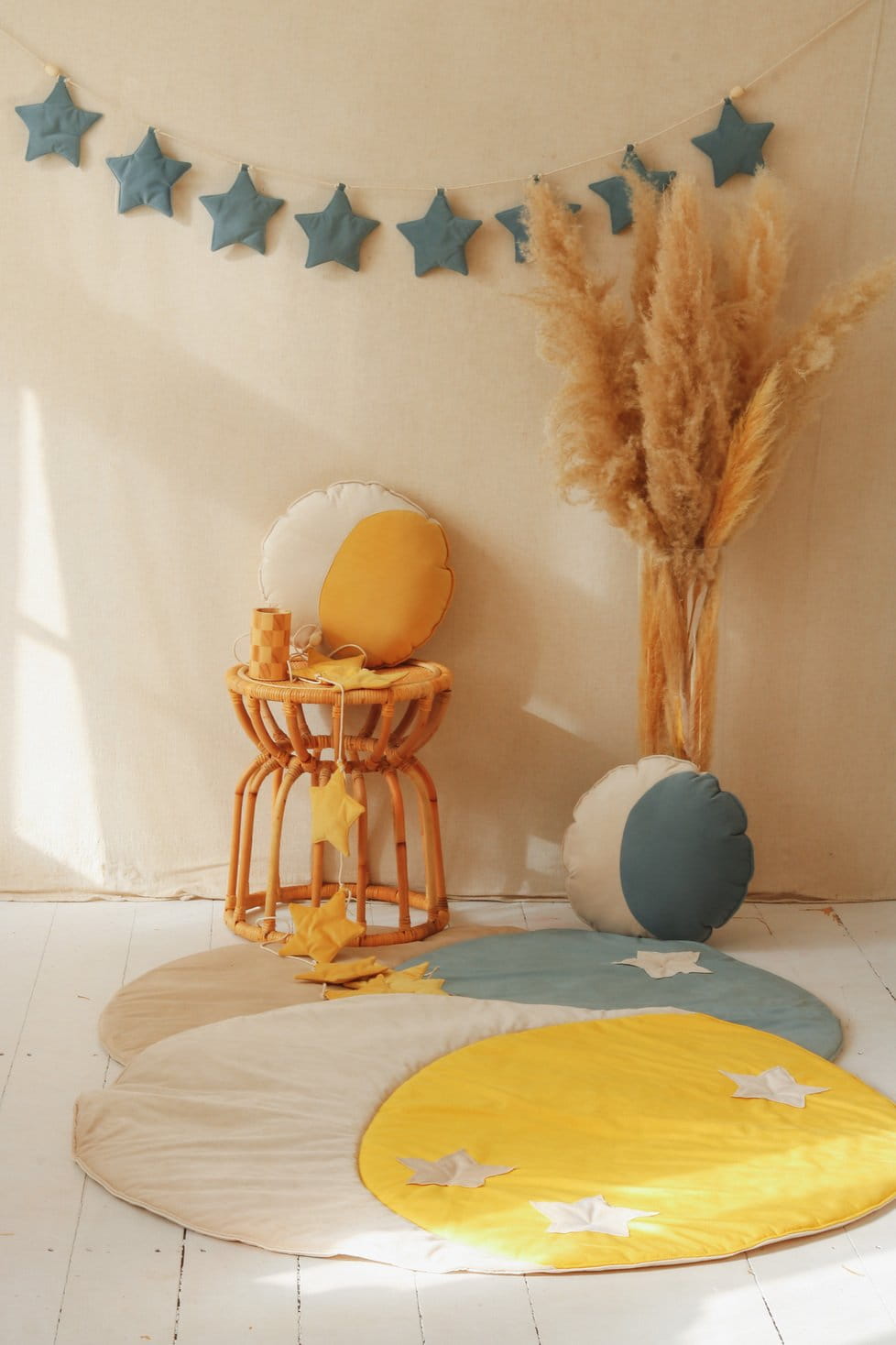 Mata Księżyc to świetny, komfortowy dywanik w pokoju maluchów, a także dodatek do namiotu, baldachimu i ozdoba na ścianę. Może być używana także w ogrodzie lub na pikniku do wszelkich zabaw już od najmłodszych lat. Komfortowa mata należy do naszej słonecznej, letniej kolekcji, która powstała z tęsknoty za obezwładniająco piękną kalifornijską przyrodą, totalnym luzem, bandaną na czole i relaksem na kocyku. To nasz hołd dużych dzieci dla następnych pokoleń. Chill!