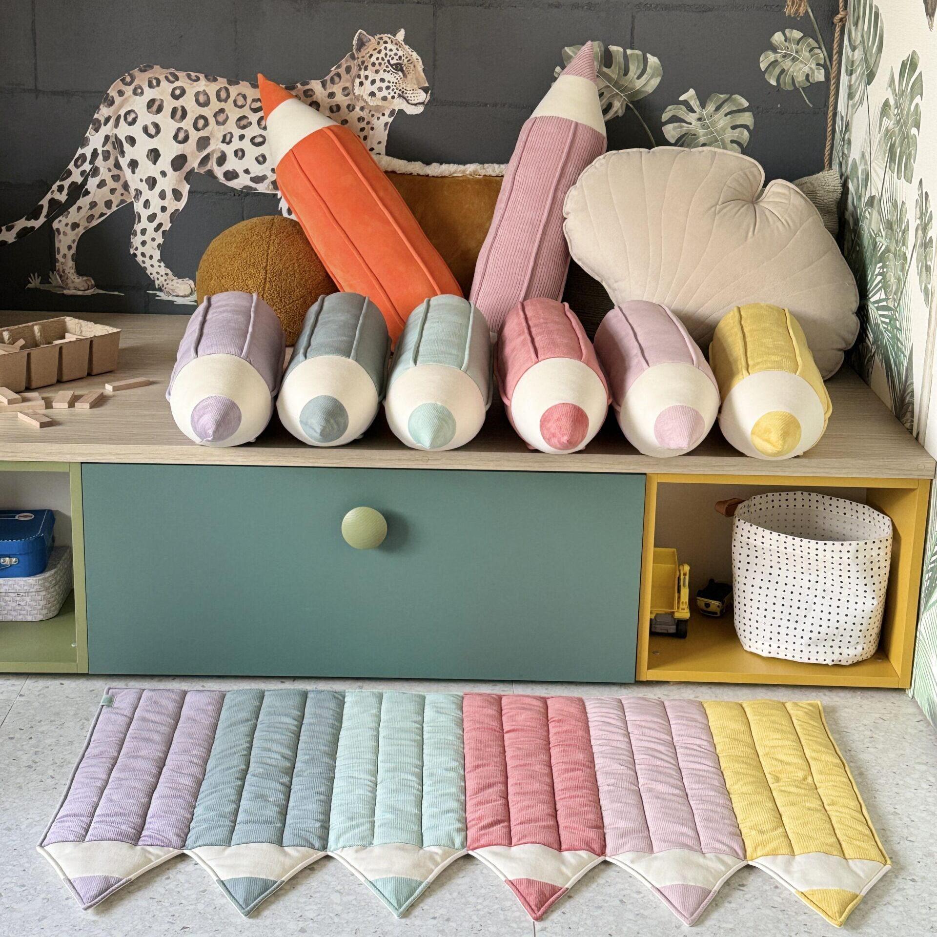 Mata Kredka z Kolekcji “Powrót do Szkoły” to idealne połączenie kreatywności i funkcjonalności w dekoracji pokoju dziecięcego. Składa się z sześciu kolorowych kredek, które nie tylko przyciągają wzrok, ale również zapewniają bezpieczną i miękką przestrzeń do zabawy, nauki czy relaksu. Wykonana z delikatnego welwetu i eleganckiego sztruksu, stanowi zarówno praktyczny, jak i estetyczny dodatek, który ożywi każde wnętrze.