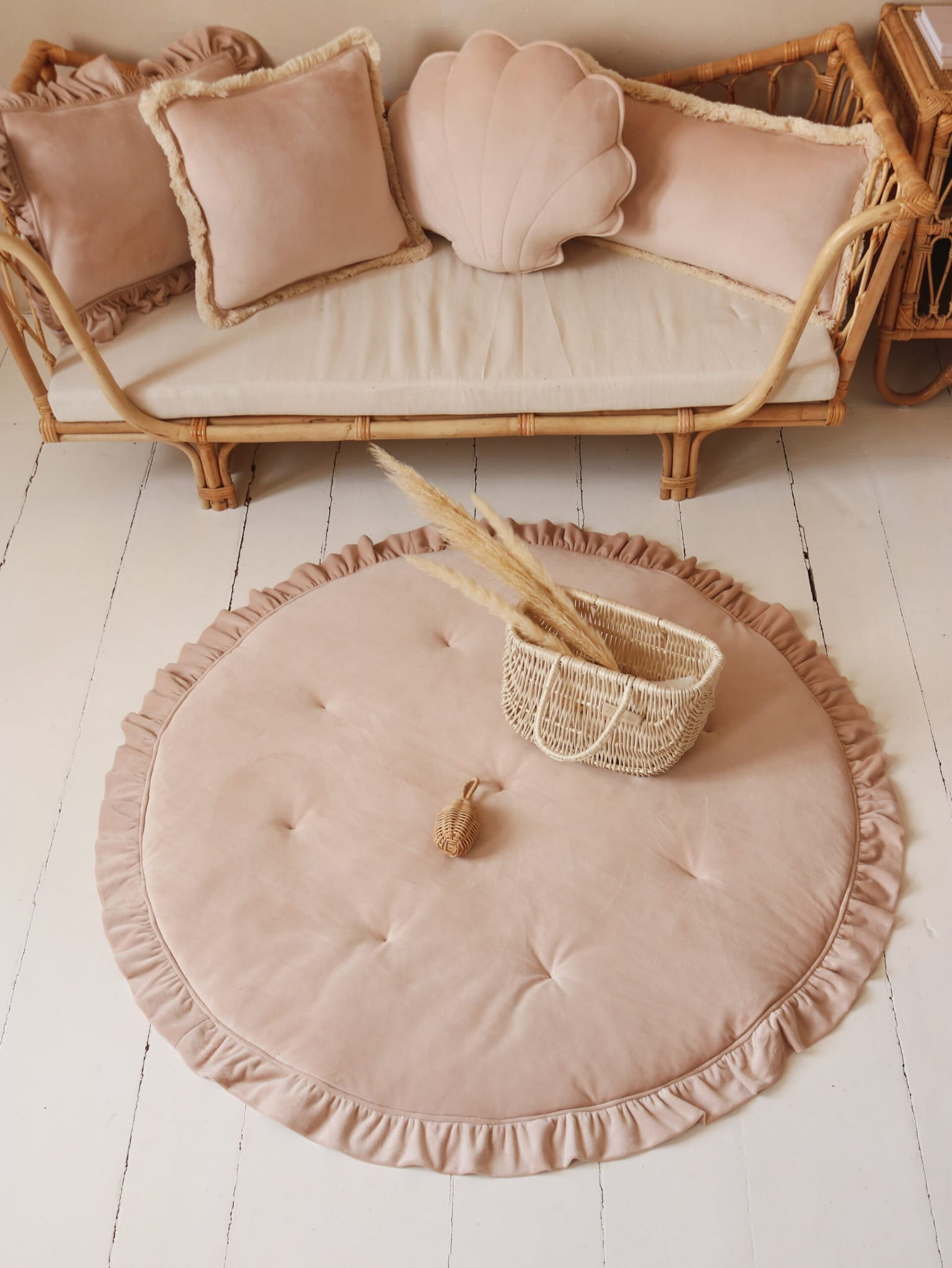 Oryginalna super miła w dotyku welwetowa mata z falbanką jest naszą propozycją dla tych, którzy lubią otaczać się pięknymi rzeczami. Romantyczne falbanki sprawią, że każdy pokój nabierze wyjątkowego charakteru, a bardzo puszysta tkanina welwetowa pięknie się błyszczy i układa. Mięciutka mata pikowana dla dzieci stanowi świetny dodatek do tipi czy baldachimu. Dzięki niej zabawa jest wygodna i przyjemna.