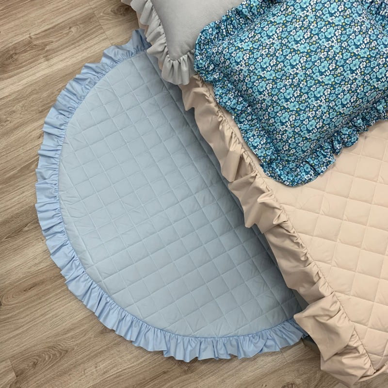 Piękna, duża i wygodna mata do leżenia. Świetnie sprawdzi się jako dywanik, mata do zabawy lub "podłoga" baldachimu. Ślicznie pikowana, gruba i z możliwością złożenia może być również kocem piknikowym lub towarzyszem nadmorskich wojaży :)