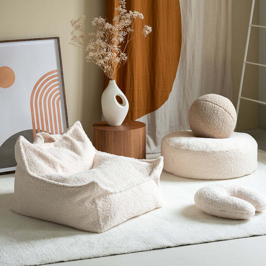 Miękki fotelik pufa dla dziecka Bouclé Cream White Wigiwama