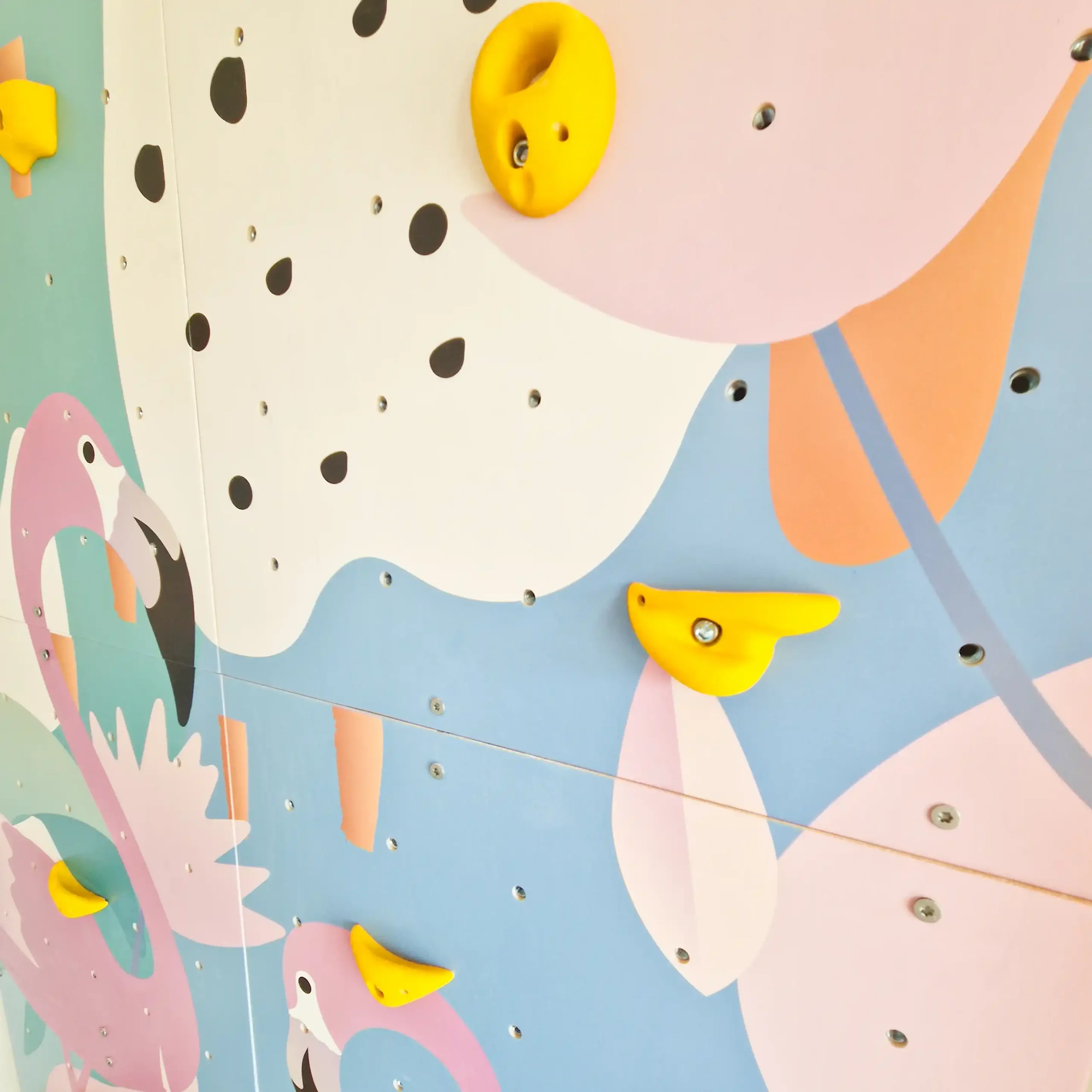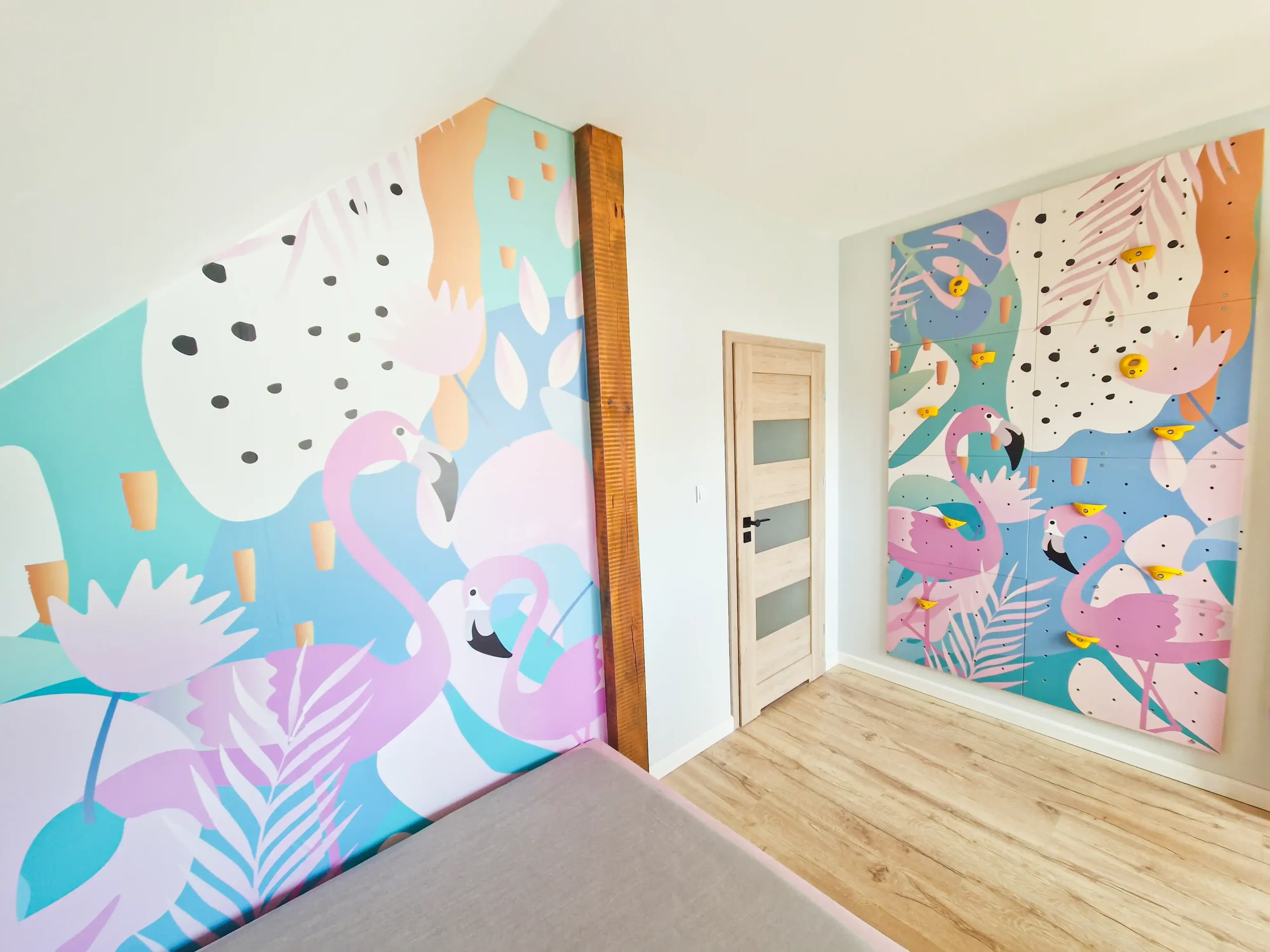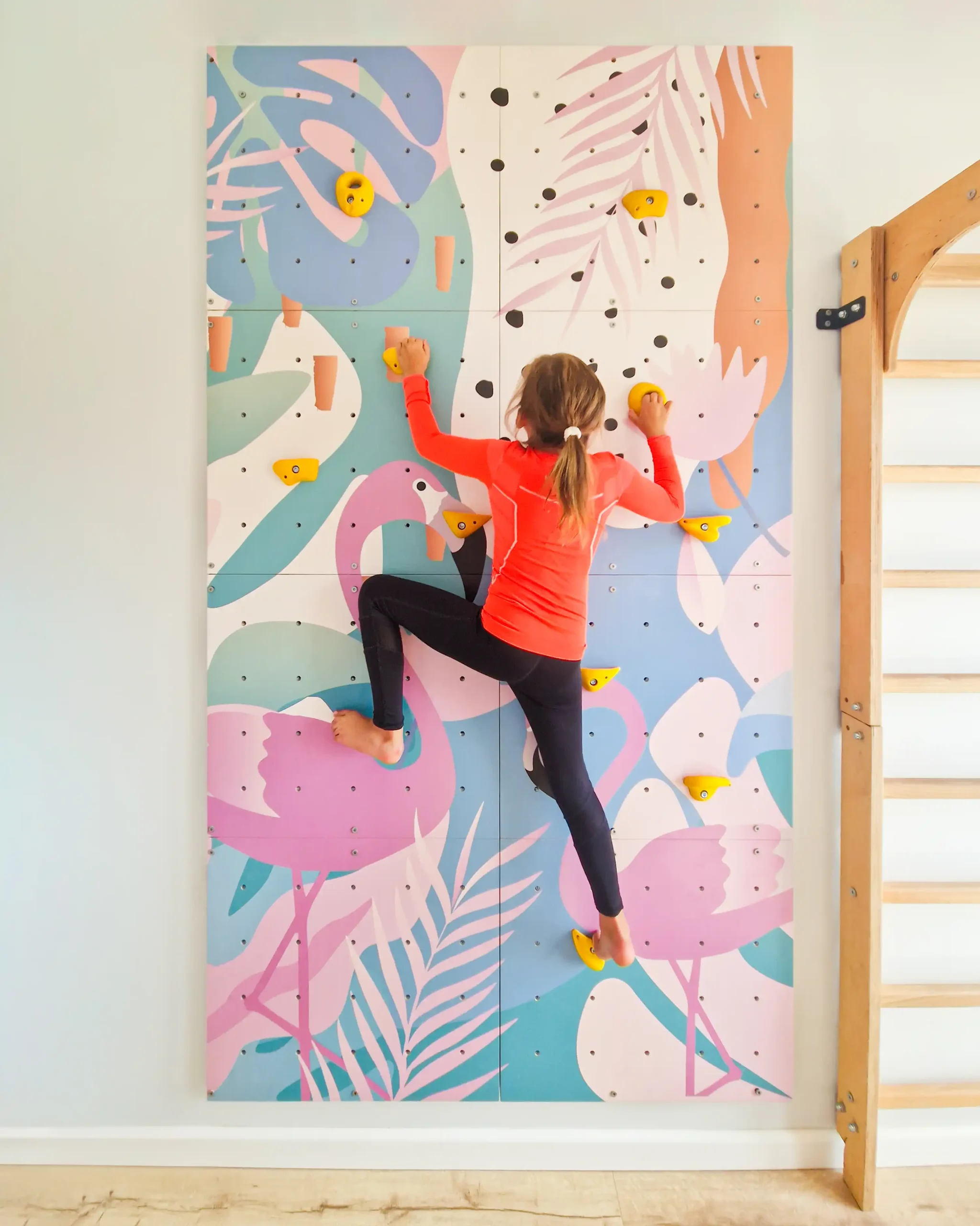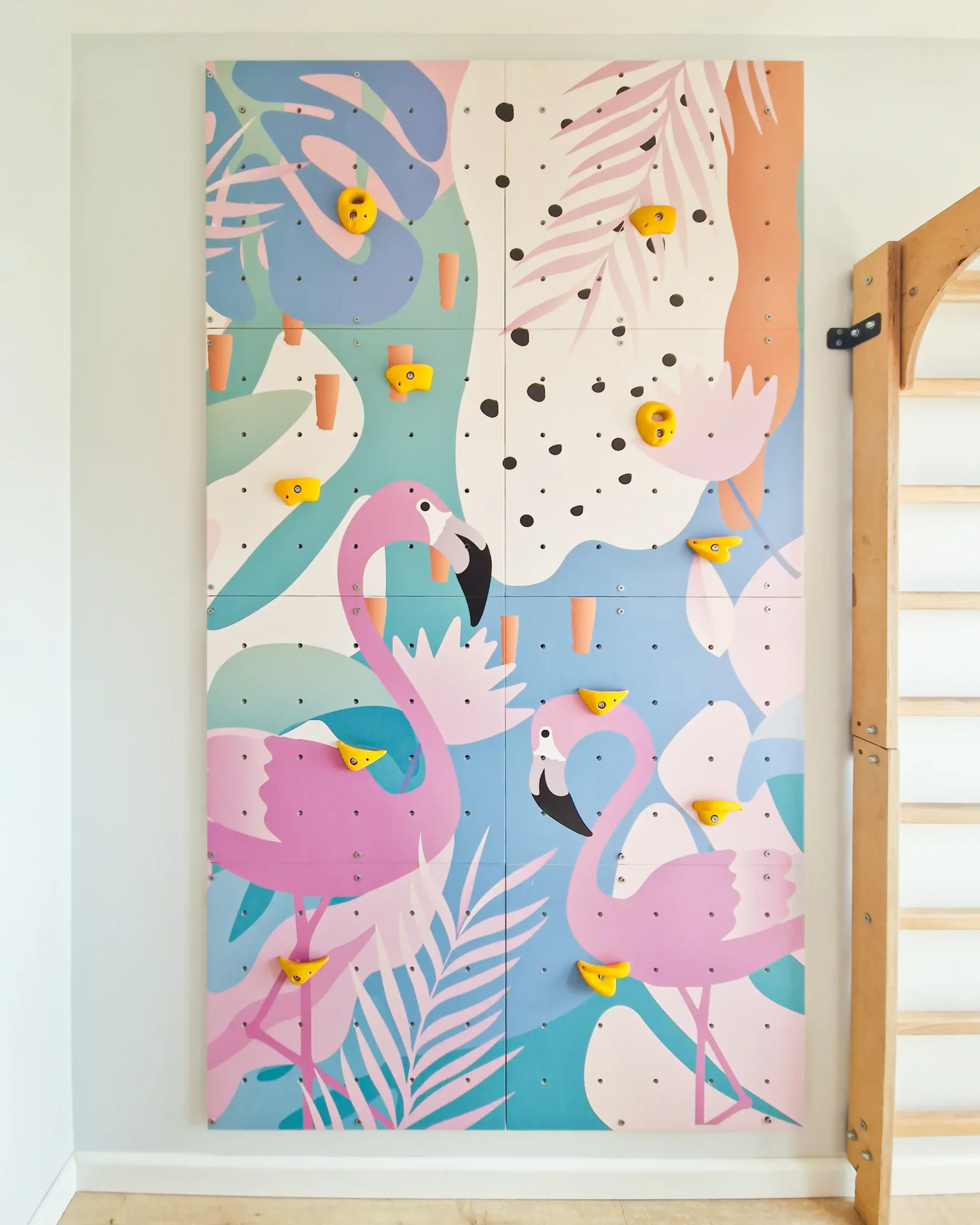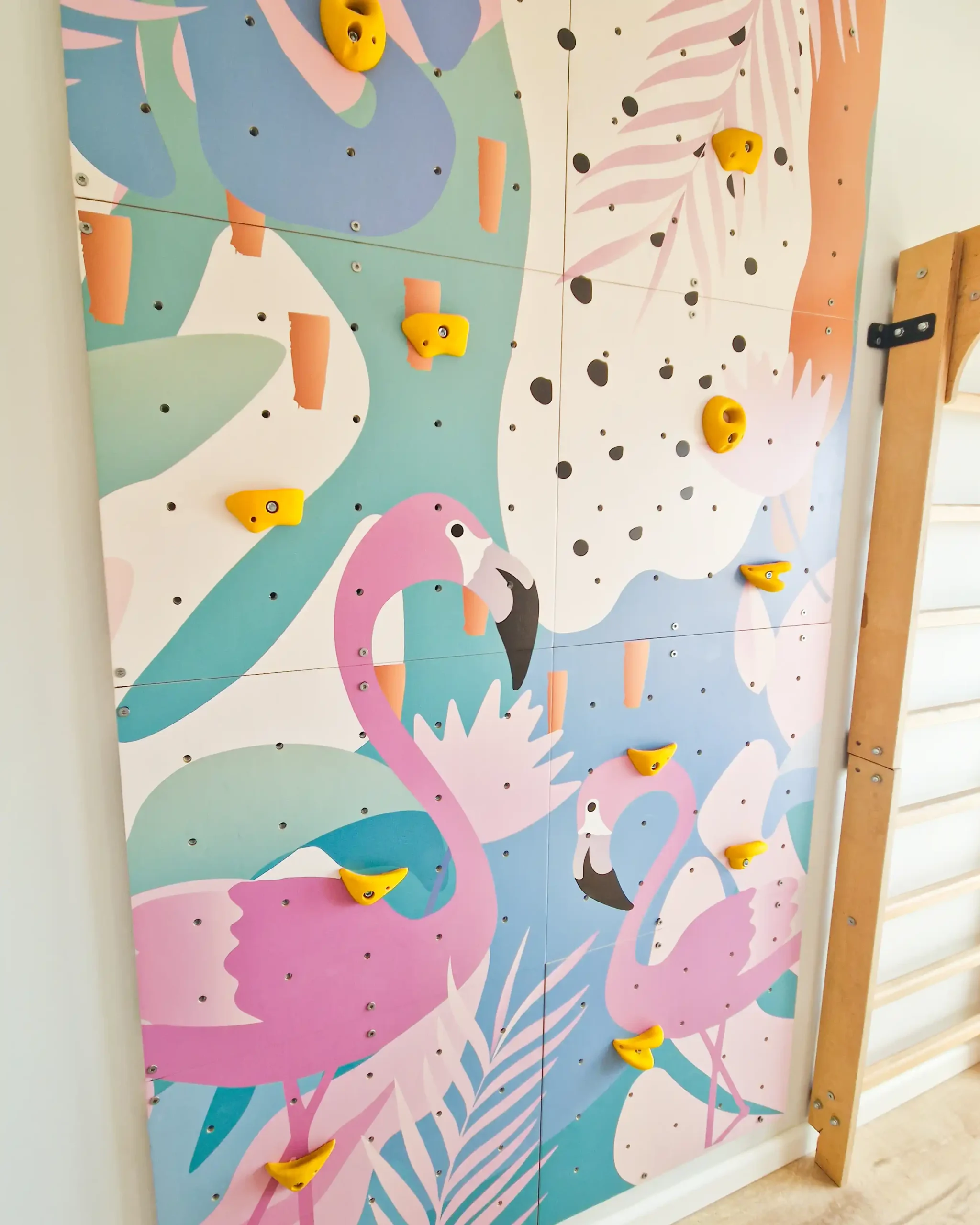 Modułowa domowa ścianka wspinaczkowa dla dzieci „Flamingi” | Ścianka wspinaczkowa edukacyjna i dekoracyjna