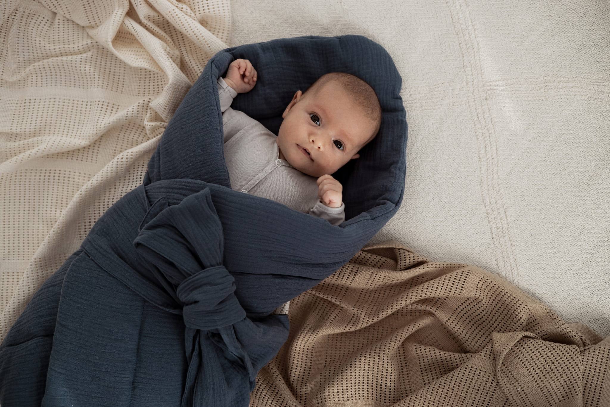 Lekki rożek muślinowy Petrol z 100% bawełny zapewnia przewiewne i bezpieczne otulenie noworodka. Termoregulacyjny materiał chroni przed przegrzaniem, a wiązanie na kokardkę umożliwia idealne dopasowanie.