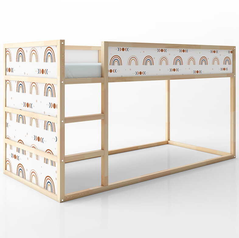 Teraz możesz spersonalizować łóżko IKEA "Kura" w wersji z drabinką, aby idealnie wpasować je w wystrój pokoju dziecka, tworząc przy tym radosną, przyjazną przestrzeń. Naklejki zostały specjalnie zaprojektowane, aby pasowały na białe panele tego łóżka, dodając mu wyjątkowego charakteru.