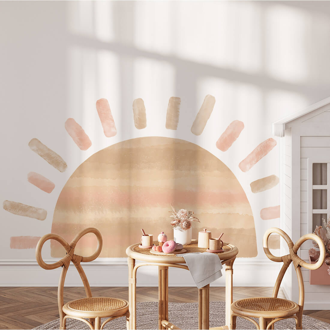 Naklejka na ścianę słońce będzie wyglądała bajecznie w każdym dziecięcym wnętrzu, a delikatna, wręcz lekka kolorystyka sprawi, że ściana nabierze wyjątkowego charakteru. Ta urocza naklejka przedstawia beżowo-różowe słońce, otoczone promieniami, które stworzą magiczną atmosferę w pokoju Twojego dziecka. To idealny sposób na dodanie uroku i radości do przestrzeni, jednocześnie wprowadzając subtelny element naturalnego piękna.