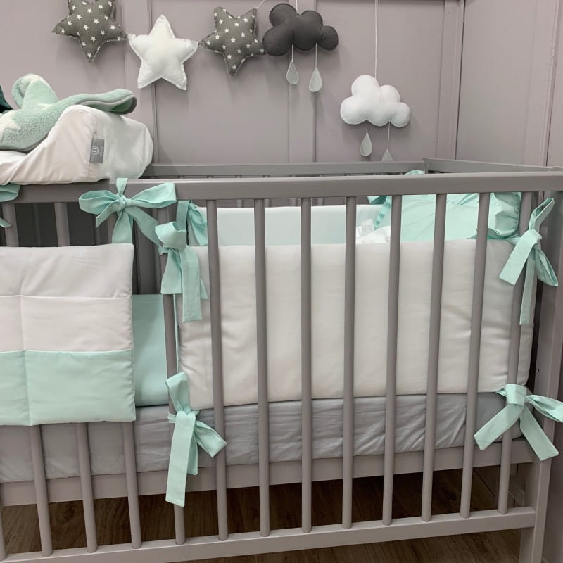 Ochraniacz na szczebelki łóżeczka Biały Miętowe Kokardy