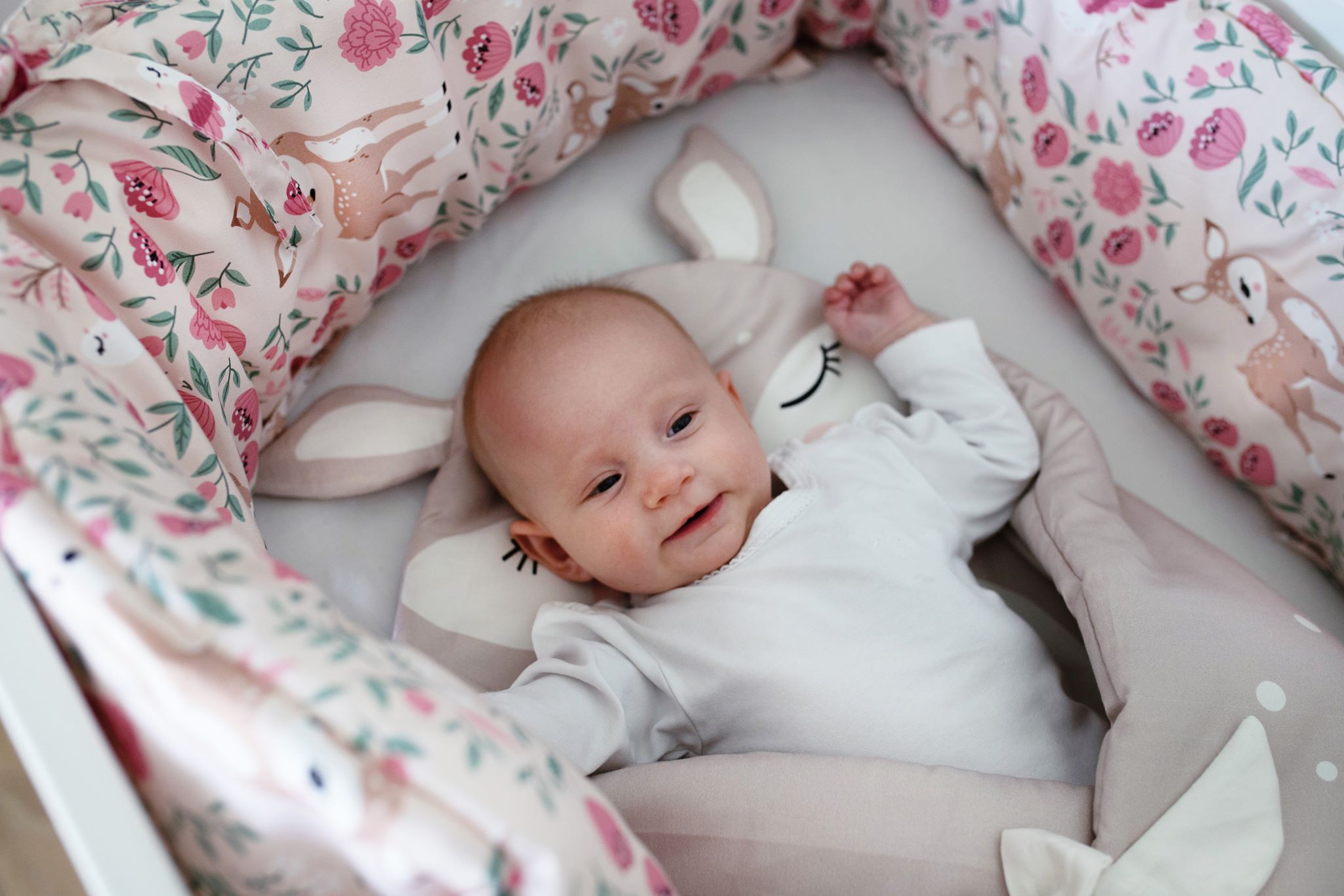 Skomponuj całą słodką sarenkową kolekcję dobierając jej pozostałe elementy: kokon niemowlęcy, rożek, pościel oraz poduszkę do karmienia.