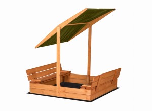 Drewniana Piaskownica Zamykana z Ławeczkami i Daszkiem 120x120 cm – Impregnowana Piaskownica Ogrodowa FSC