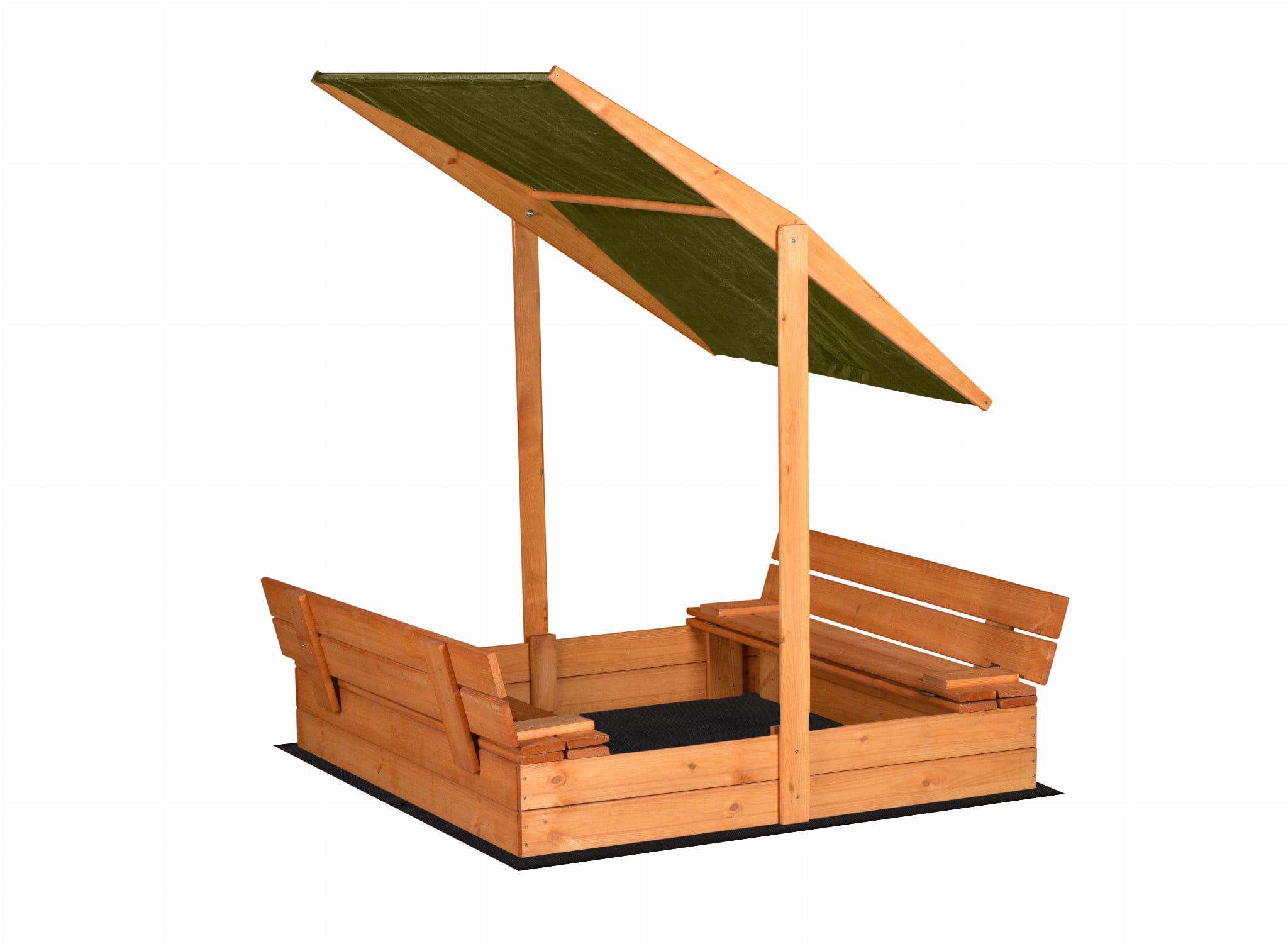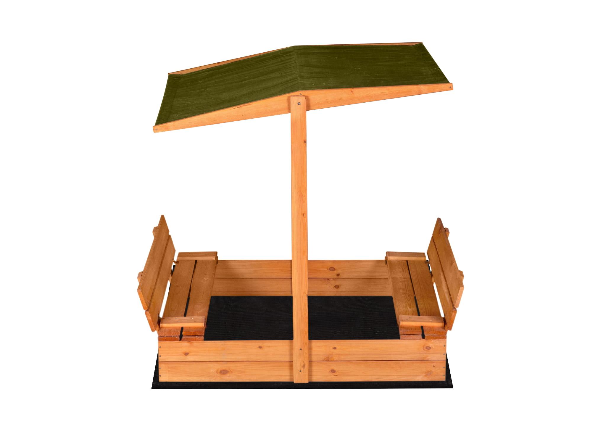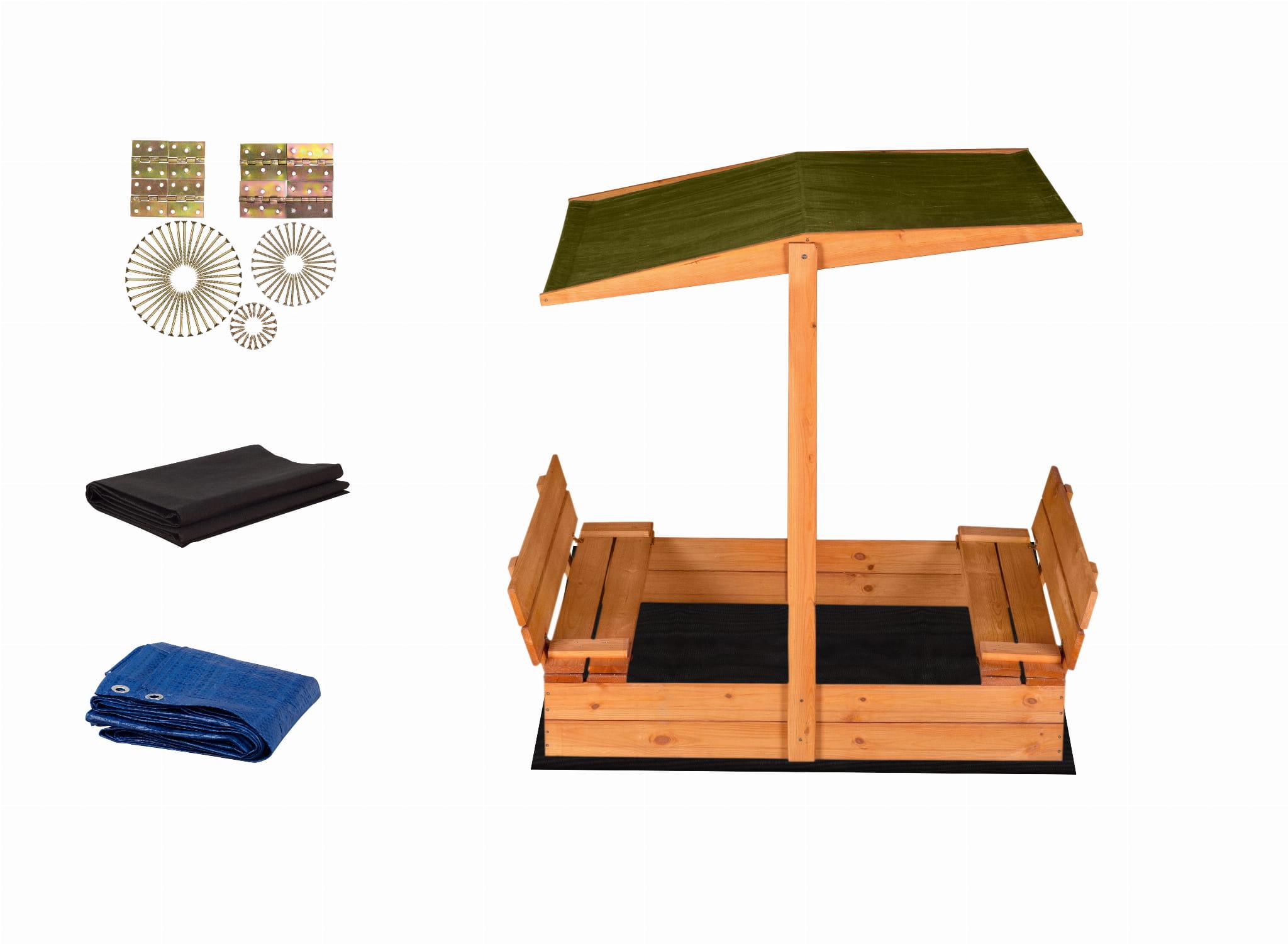 Drewniana Piaskownica Zamykana z Ławeczkami i Daszkiem 120x120 cm – Impregnowana Piaskownica Ogrodowa FSC