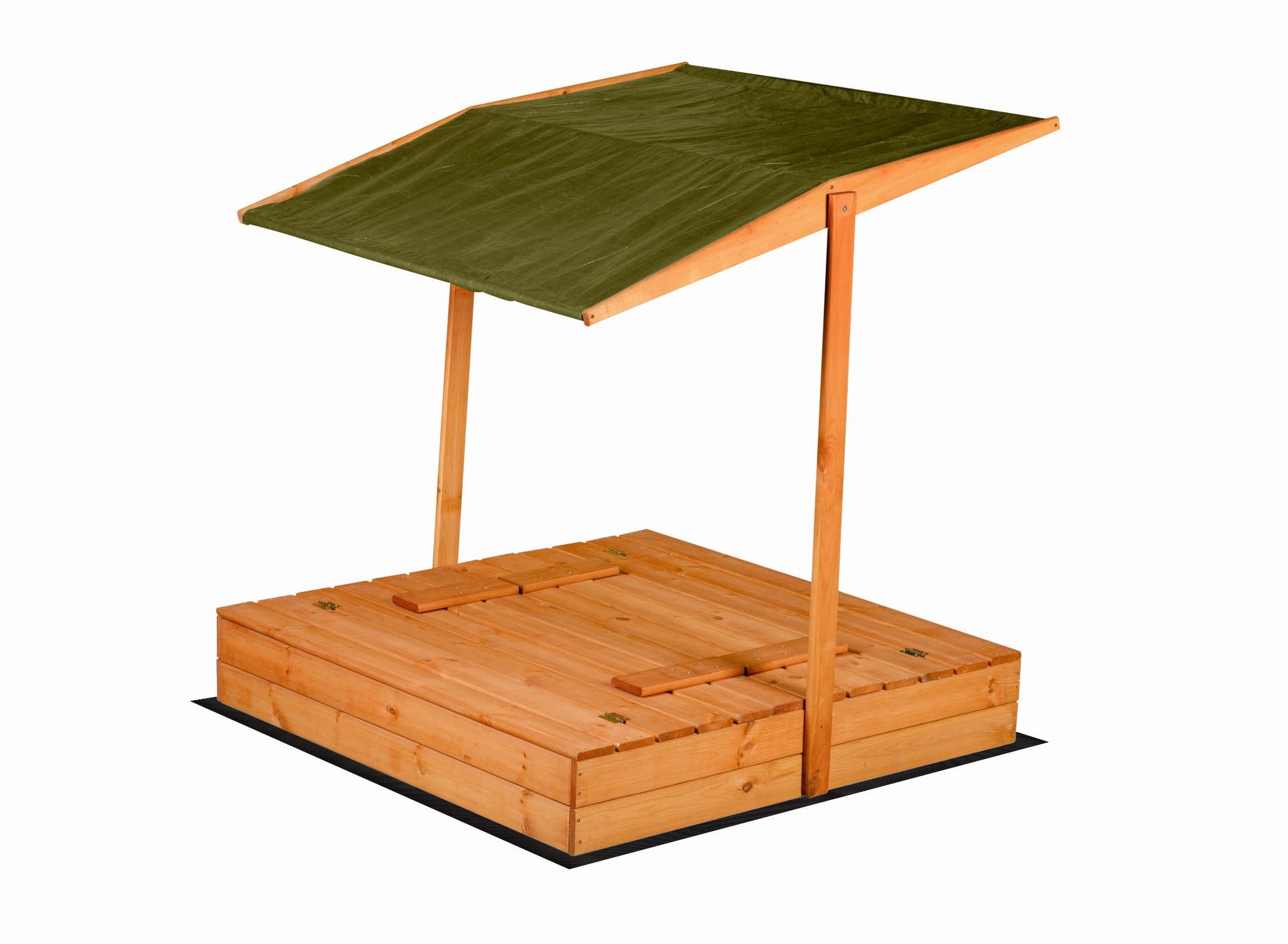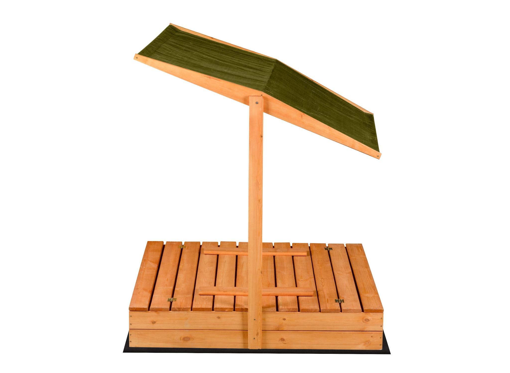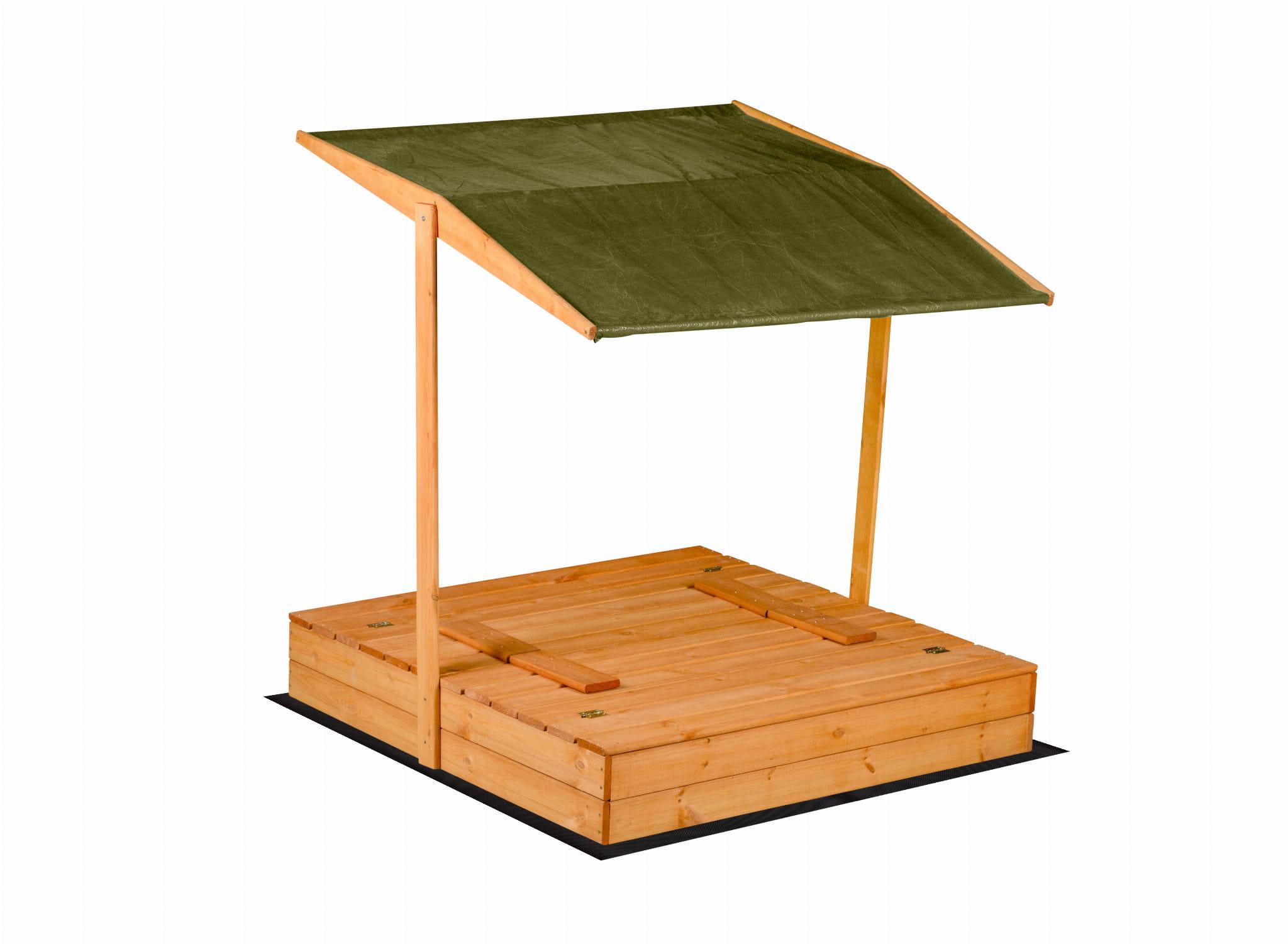 Piaskownica została wyposażona w praktyczny daszek przeciwsłoneczny, który chroni dzieci przed intensywnym słońcem oraz lekkim deszczem. Dzięki temu dzieci mogą bawić się komfortowo nawet w ciepłe, słoneczne dni.