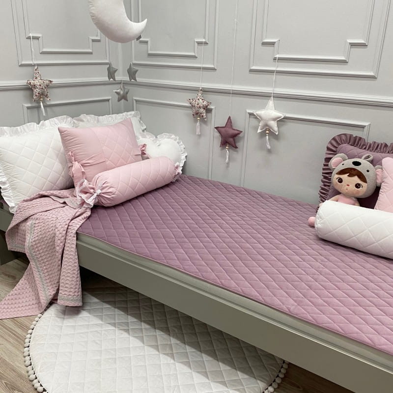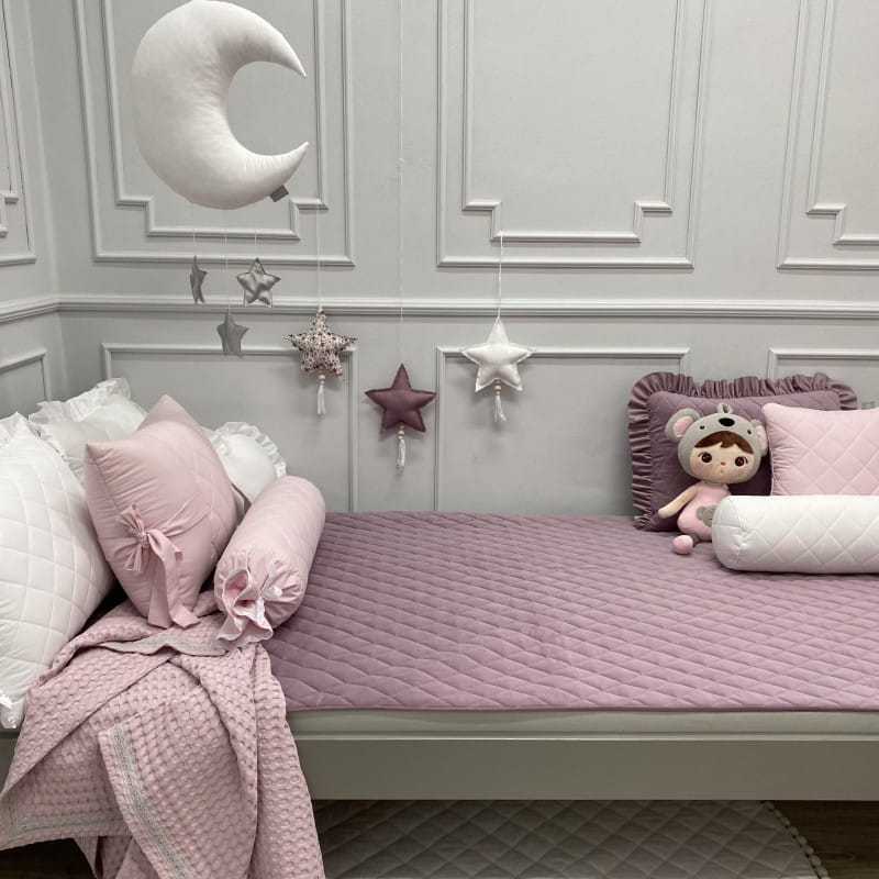 Aksamitna pikowana narzuta velvet jagodowa to połączenie funkcjonalności, luksusowego wyglądu i starannego wykonania – idealna dla osób, które chcą dodać wnętrzu pokoju dziecka głębi i elegancji.