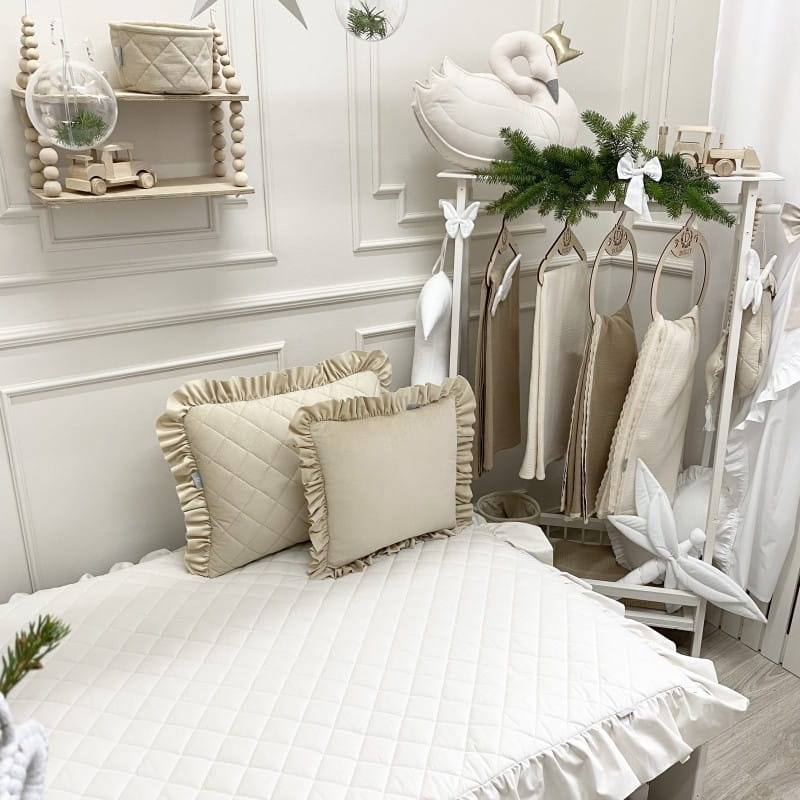 Pikowana narzuta z falbanką Kość Słoniowa - różne wymiary