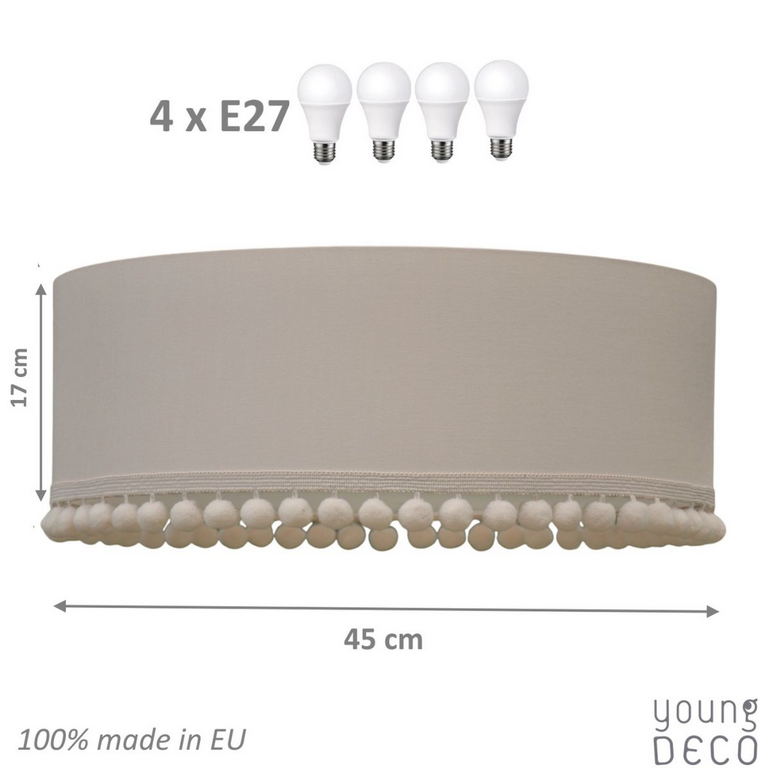 Plafon kremowy z pomponikami od YoungDeco to klasyczny i subtelny element dekoracyjny, który wnosi do pomieszczenia przytulność i delikatność. Sprawdzi się tam, gdzie poszukujesz urządzenia sufitu, które nie przytłoczy wnętrza, ale będzie eleganckim akcentem.