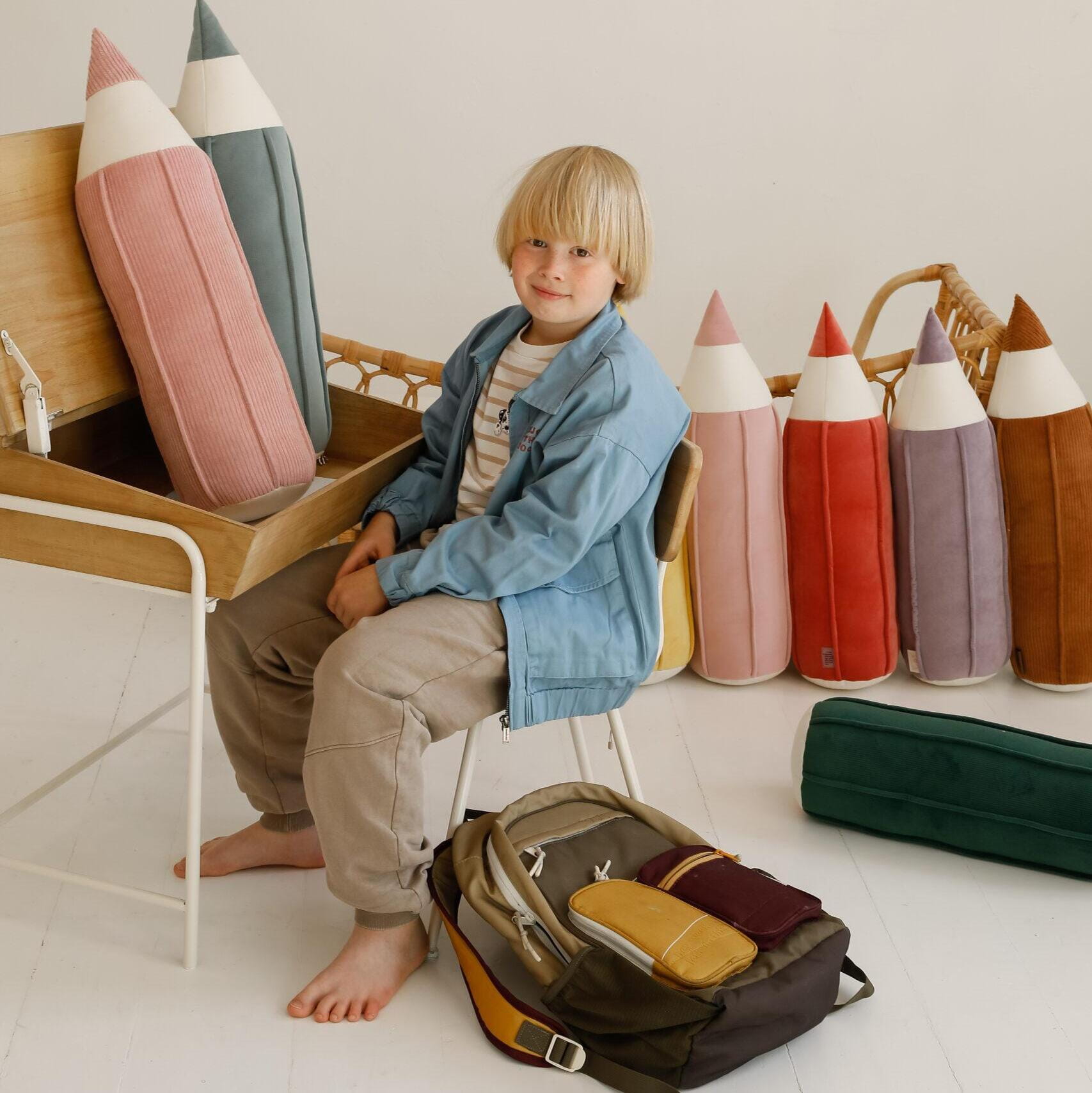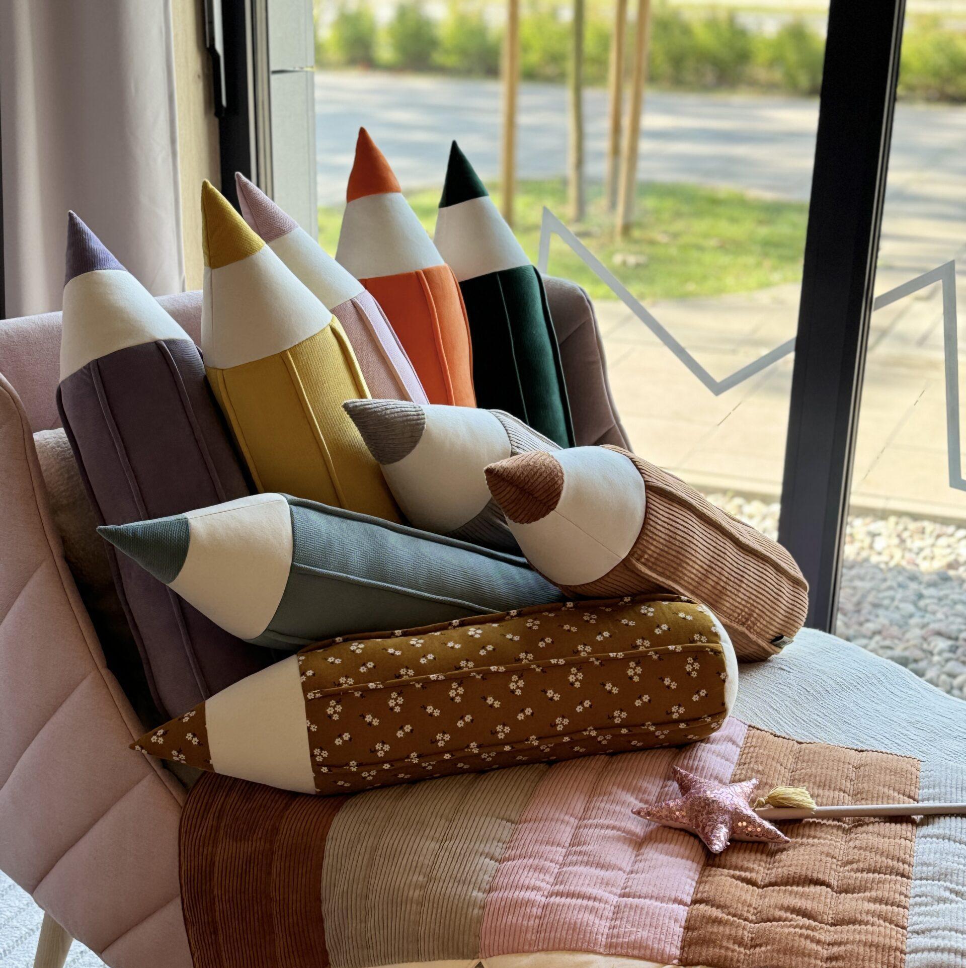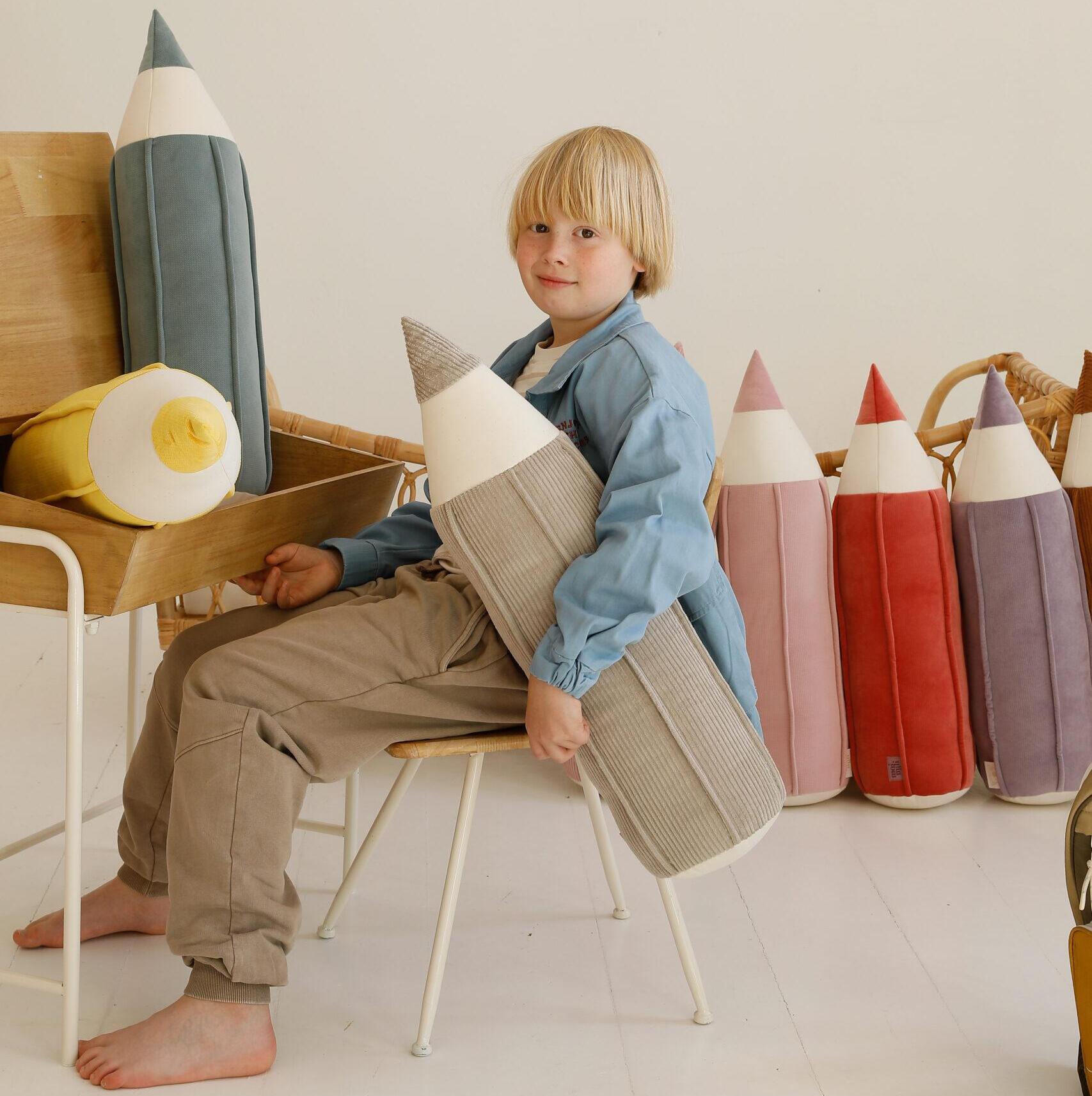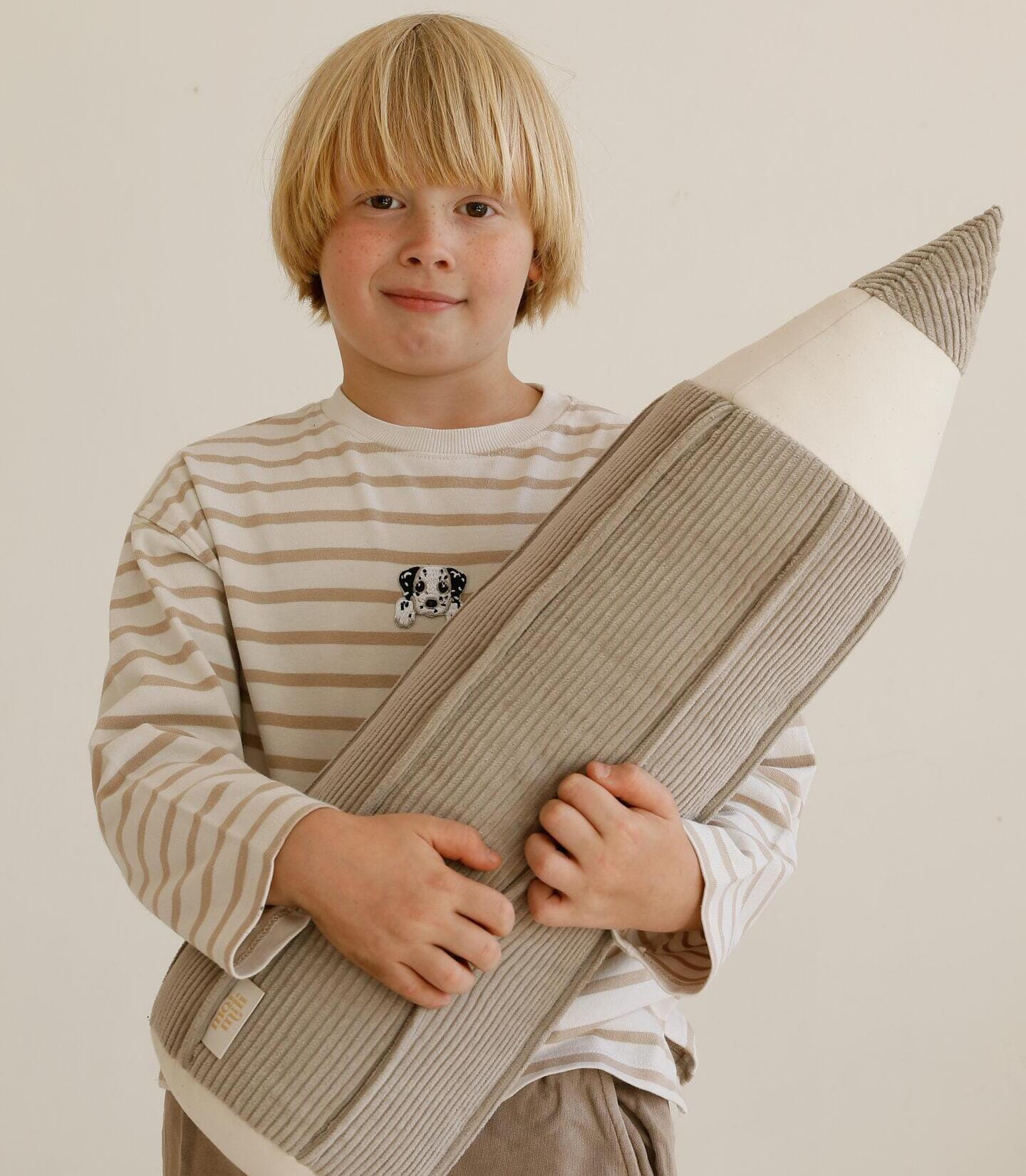 Poduszka Kredka “Latte” z kolekcji “Powrót do Szkoły” to uroczy wałek w kształcie kredki, wykonany z miękkiego welwetu lub sztruksu, idealny do pokoju dziecka, nastolatka czy nawet salonu. Poduszka, ręcznie szyta i dodatkowo przeszyta dla trwałości, doskonale łączy funkcjonalność z estetyką, tworząc wyjątkową dekorację.