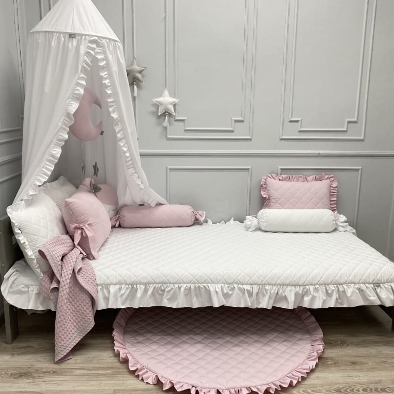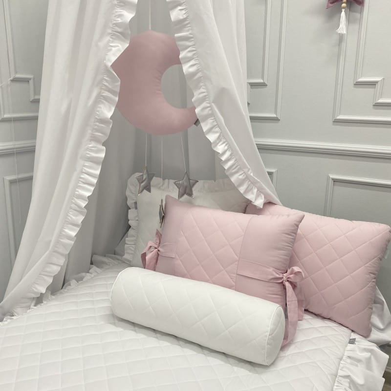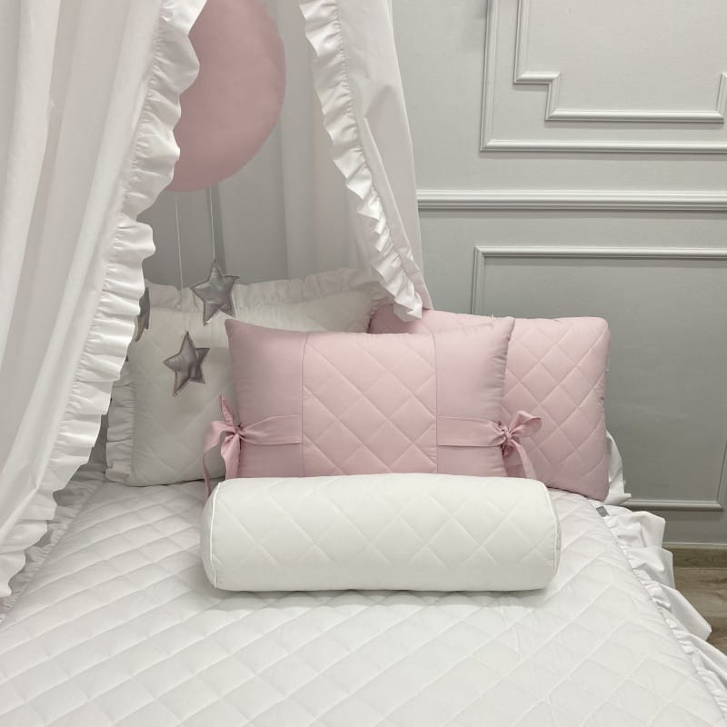 Pikowana Poduszka z Kokardami to piękny dodatek do pokoju dziecka, salonu czy sypialni. Połączenie pikowanej faktury z gładką bawełną oraz dwie ozdobne kokardy nadają poduszce wyjątkowego uroku.