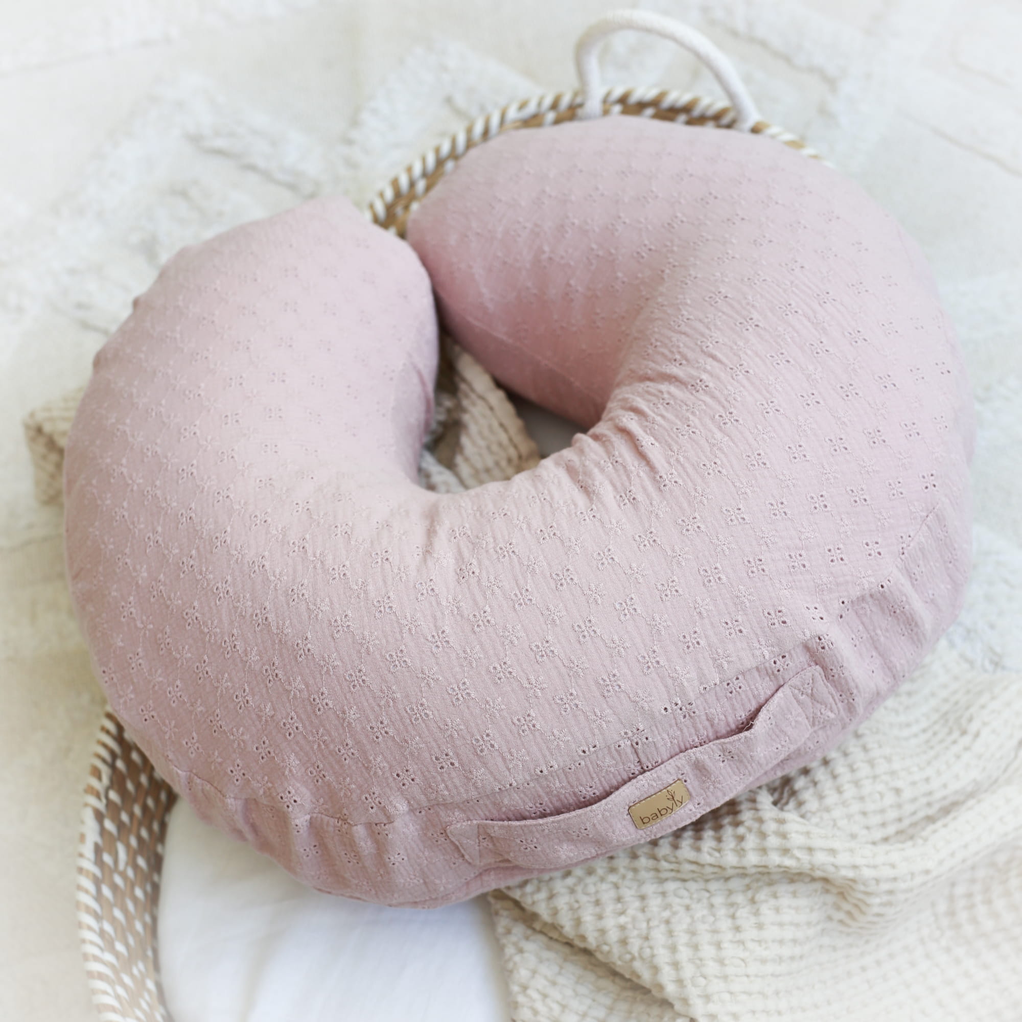 Poduszka rogal do karmienia Haft Mglisty Róż