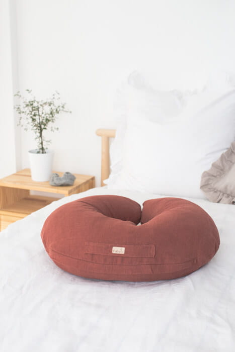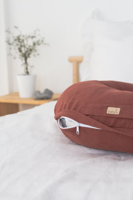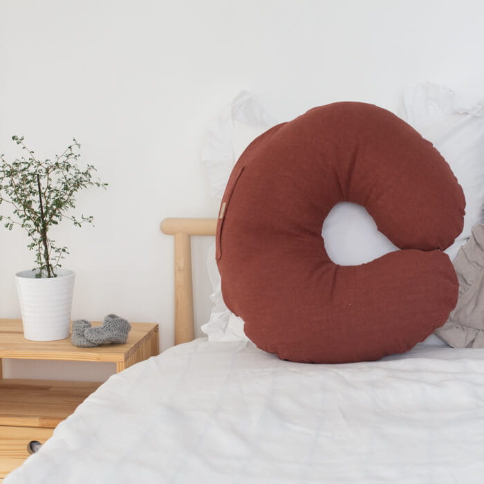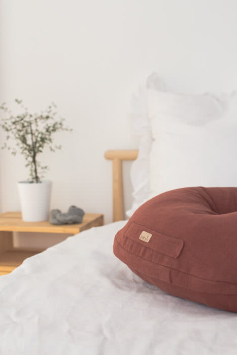 Poduszka do karmienia wykonana została z pięknej delikatnego lnu zmiękczanego lub upranego. Ułatwia karmienie niemowlaka, odciąży plecy mamy. Może służyć mamie już w okresie ciąży jako podpórka pod brzuszek, głowę lub nogi. Niemowlakowi ułatwi jedzenie. Dzięki niej maluszek karmiony piersią może przybrać różne pozycje, co zapewni odpowiednie spijanie mleka. Poduszki można używać również w czasie leżakowania maluszka na brzuchu lub przy nauce samodzielnego siedzenia. Pokrowiec poduszki można z łatwością zdjąć co ułatwi pranie. Poduszka posiada uchwyt, dzięki czemu z łatwością przeniesiesz ją nawet z maluszkiem na rękach.