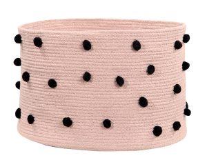 Kosze Lorena Canals są wykonane za pomocą okrągłej techniki plecionkowej. Pomponki bawełniane są ręcznie szyte, jeden po drugim, na całej powierzchni, w kontrastującym kolorze