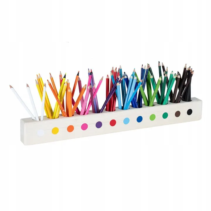 Dzięki precyzyjnie rozmieszczonym otworom kredki dla dzieci mają swoje stałe miejsce, co ułatwia naukę kolorów, rozwija koncentrację i zachęca do twórczej zabawy.