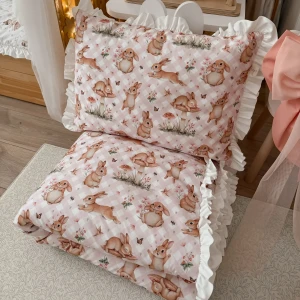 dwustronny wzór w króliczki po obu stronach kołderki i poduszki