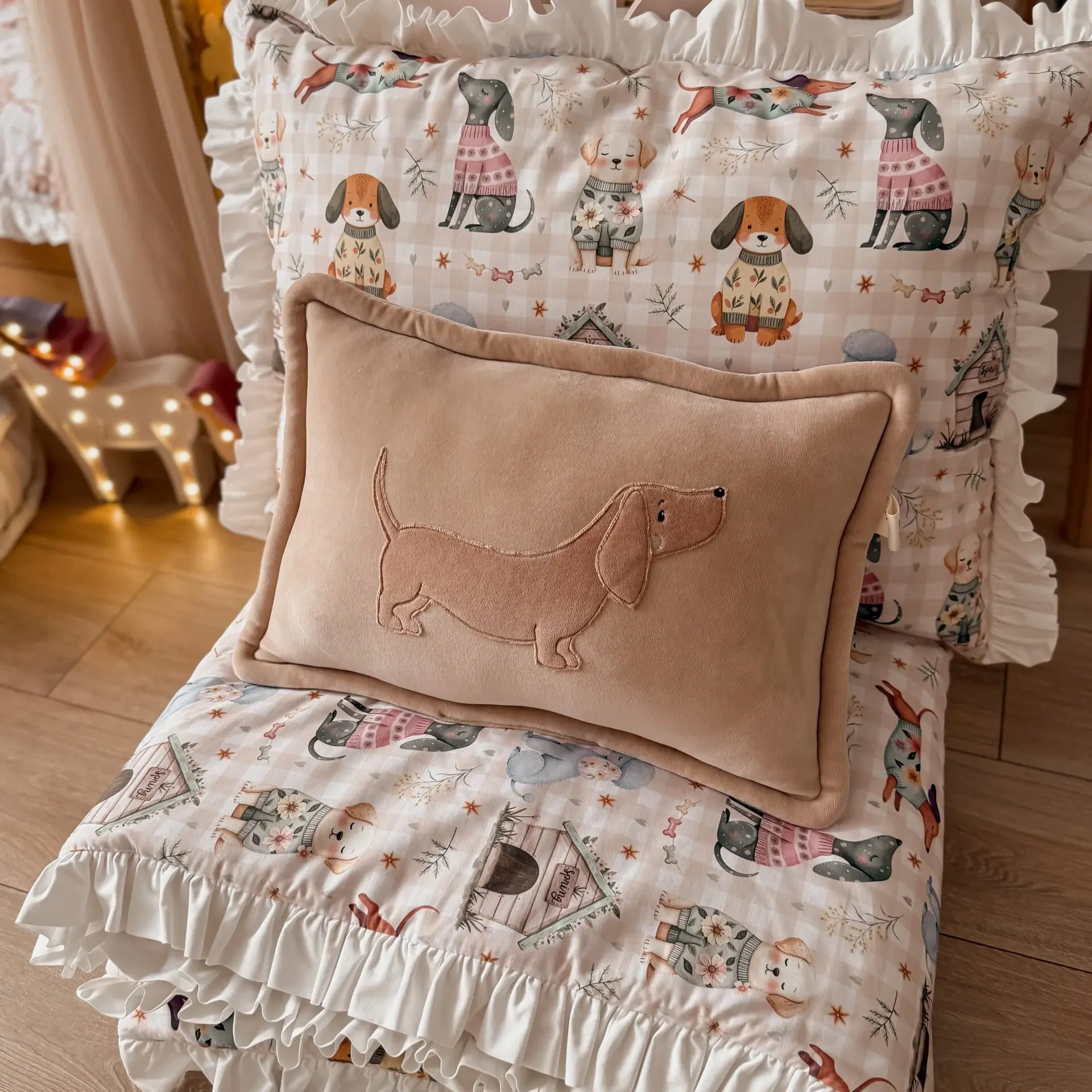 Pościel dziecięca z bawełny premium bez wypełnienia z falbankami Pieski - różne rozmiary