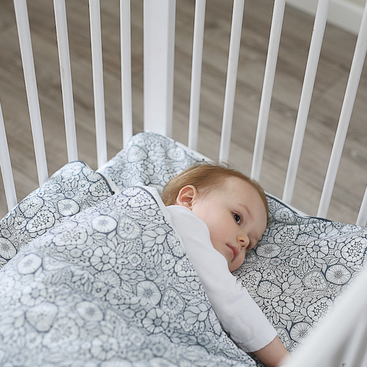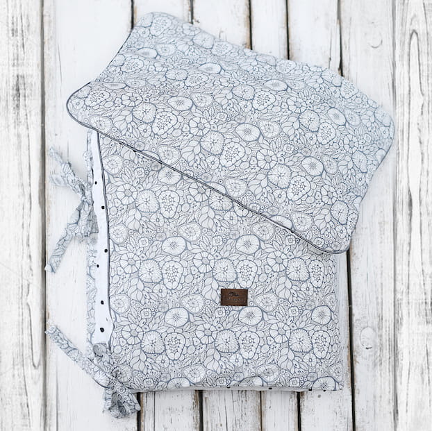 W skład zestawu wchodzi niezwykle lekka i miękka kołderka oraz płaska, więc bezpieczna dla niemowlęcia poduszka. Pościel jest dwustronna - wykonana z mięciutkiej 100% bawełny posiadającej nadruk bezpieczny dla wrażliwej skóry dziecka.