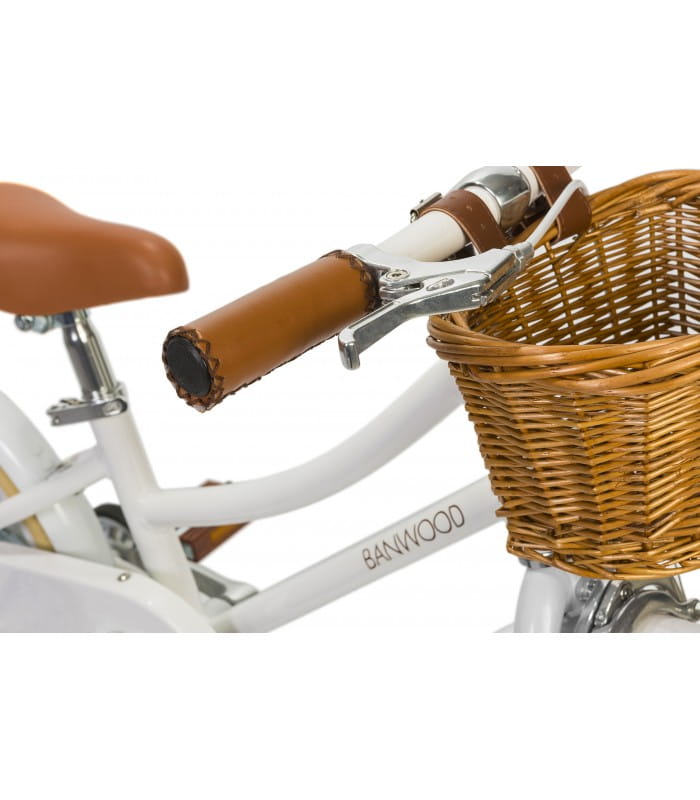 Ten model zachwyca lekką aluminiową ramą w kolorze białym lub różowym, stylowymi detalami w brązie (skórzane siodełko i uchwyty), unikatowymi pedałami z drewna palisandrowego oraz wiklinowym, odpinanym koszykiem – w sam raz na zabawki lub mały piknik!