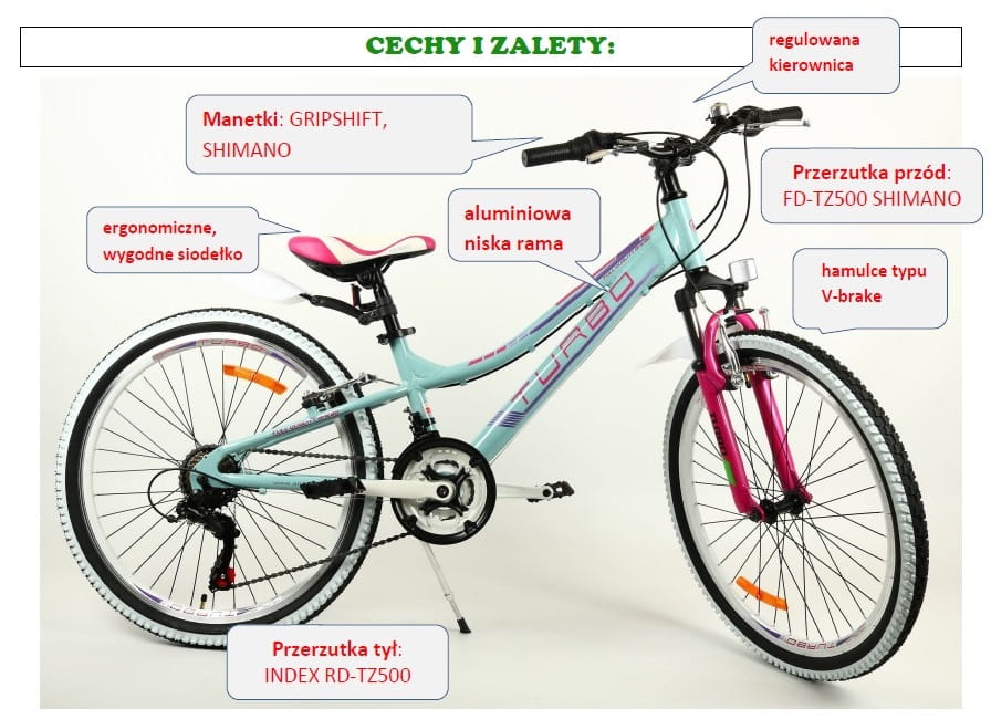 - Przerzutka przednia: SHIMANO RD-TY22 21-biegowa