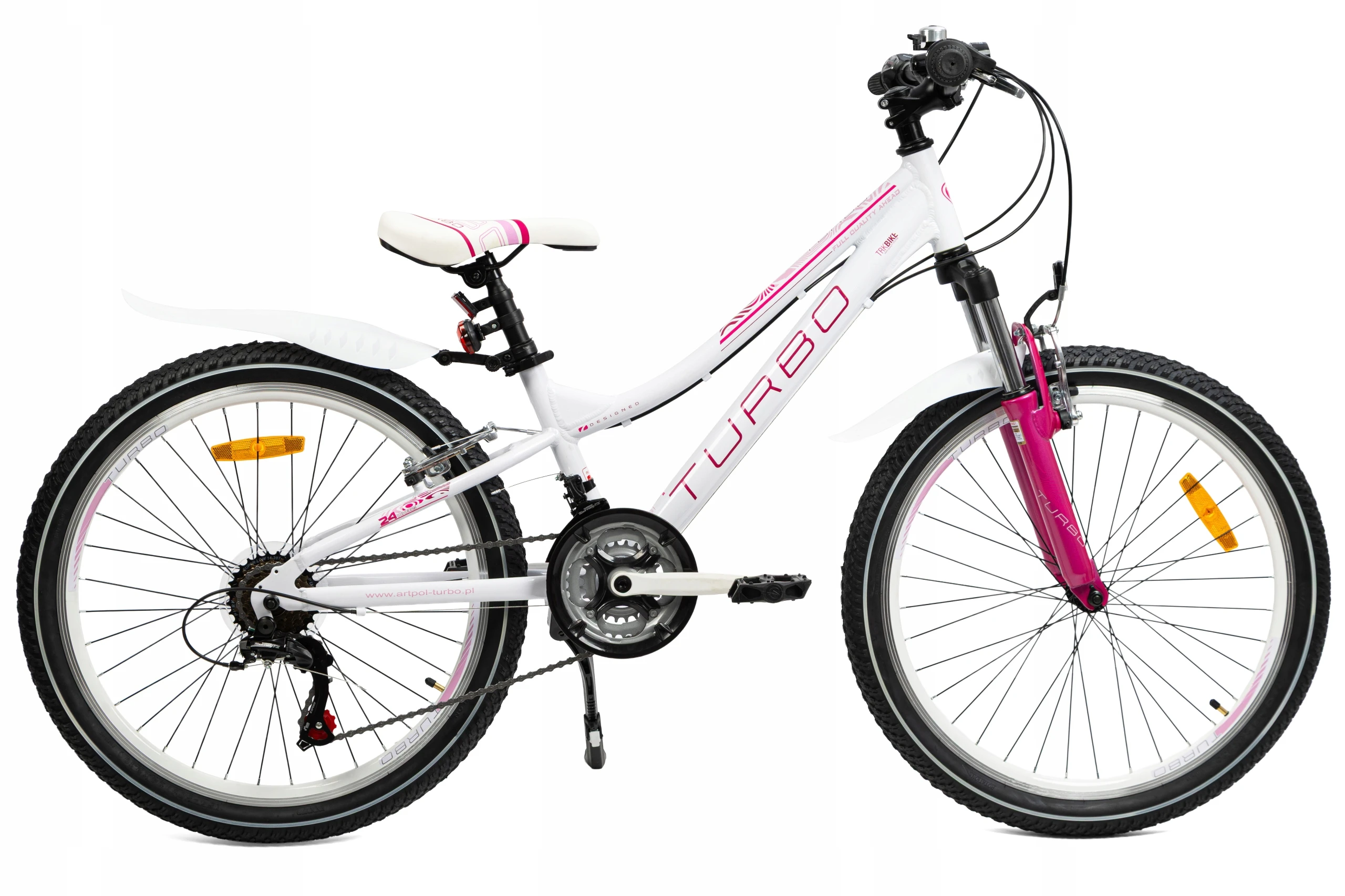 - Rower dziecięcy MTB 24” aluminiowy biało-różowy | rower górski junior Shimano 21 biegów