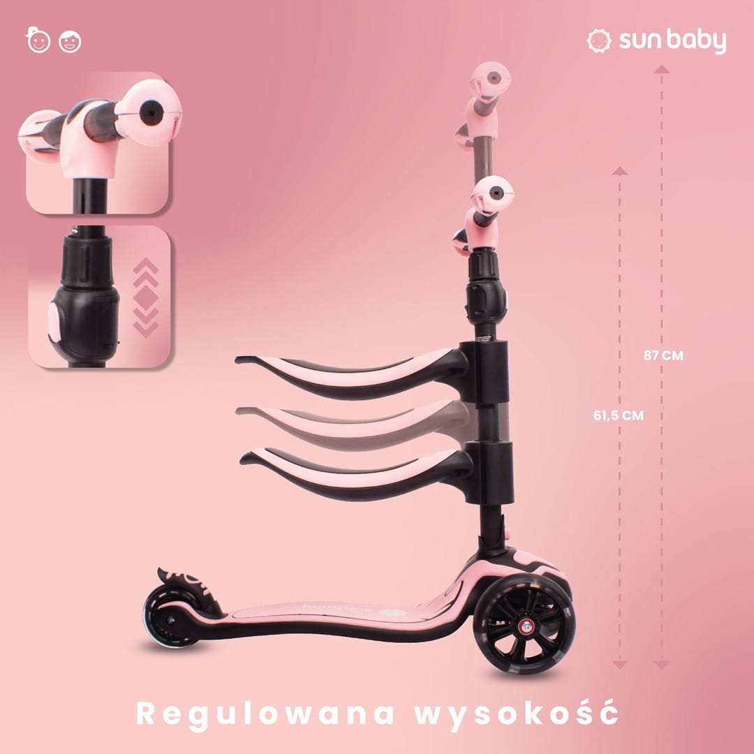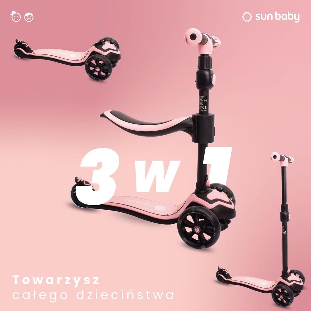 Pozwól dziecku odkrywać świat w wyjątkowym stylu! Flash 3 w 1 to multifunkcyjny pojazd, który łączy w sobie rowerek biegowy, hulajnogę i deskorolkę – a wszystko to w uroczej, modnej wersji kolorystycznej pudrowy róż, która podbije serce każdej małej miłośniczki aktywnej zabawy.