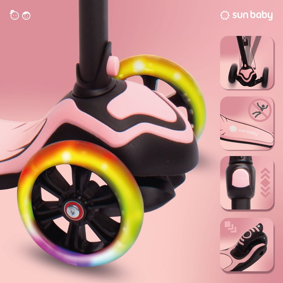 Rowerek biegowy hulajnoga deskorolka Flash 3 w 1 z kołami LED - pudrowy róż