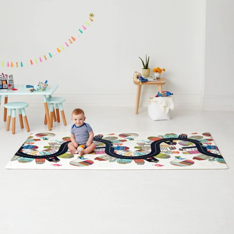 Skip Hop Dwustronny Dywan Piankowy Wesołe Podwórko to bezpieczne, miękkie i funkcjonalne rozwiązanie do zabawy. Z jednej strony kolorowy, dziecięcy wzór, z drugiej stonowany dekoracyjny print, pasujący do nowoczesnych wnętrz. Wodoodporny, łatwy do czyszczenia i wolny od PVC.