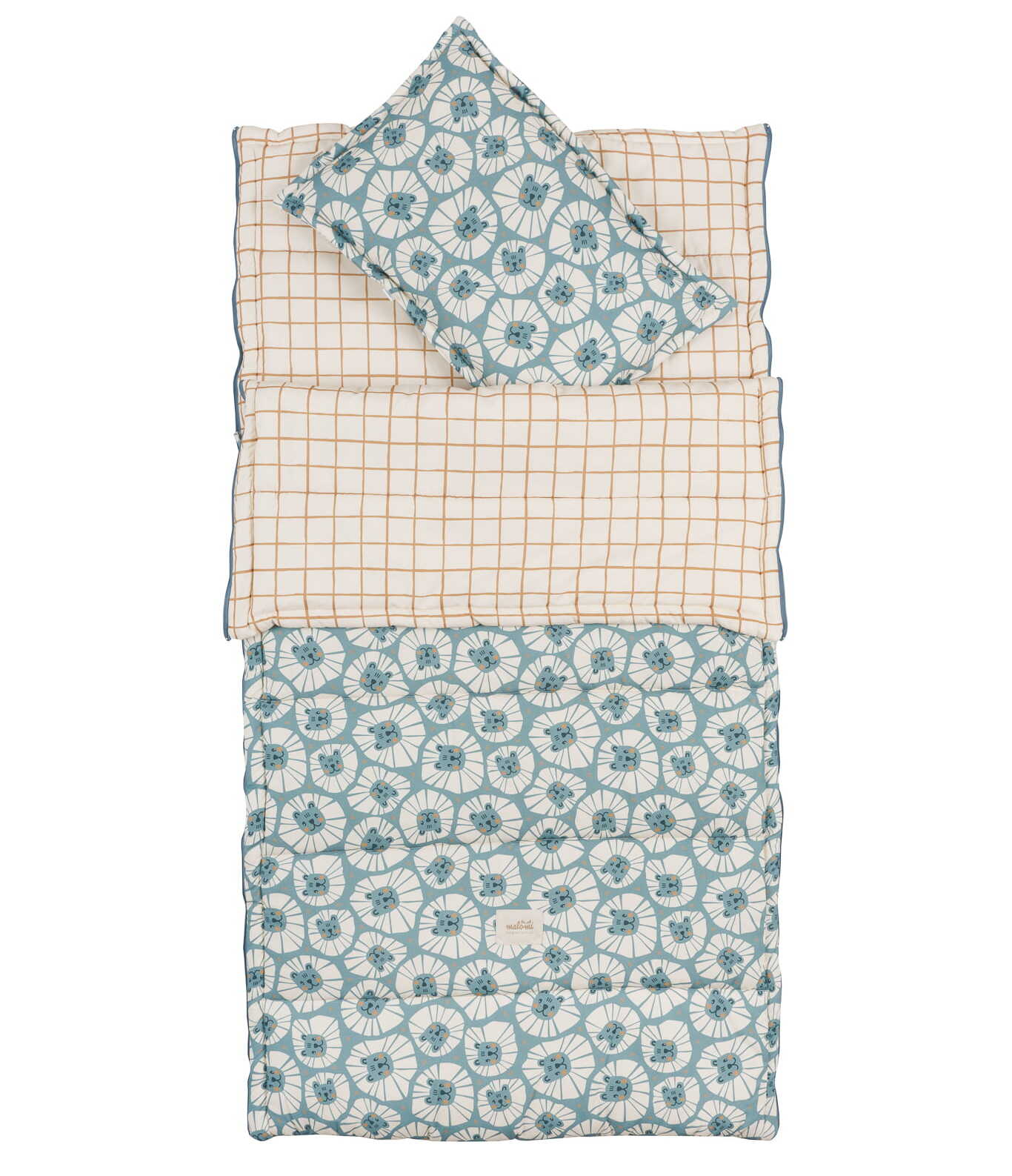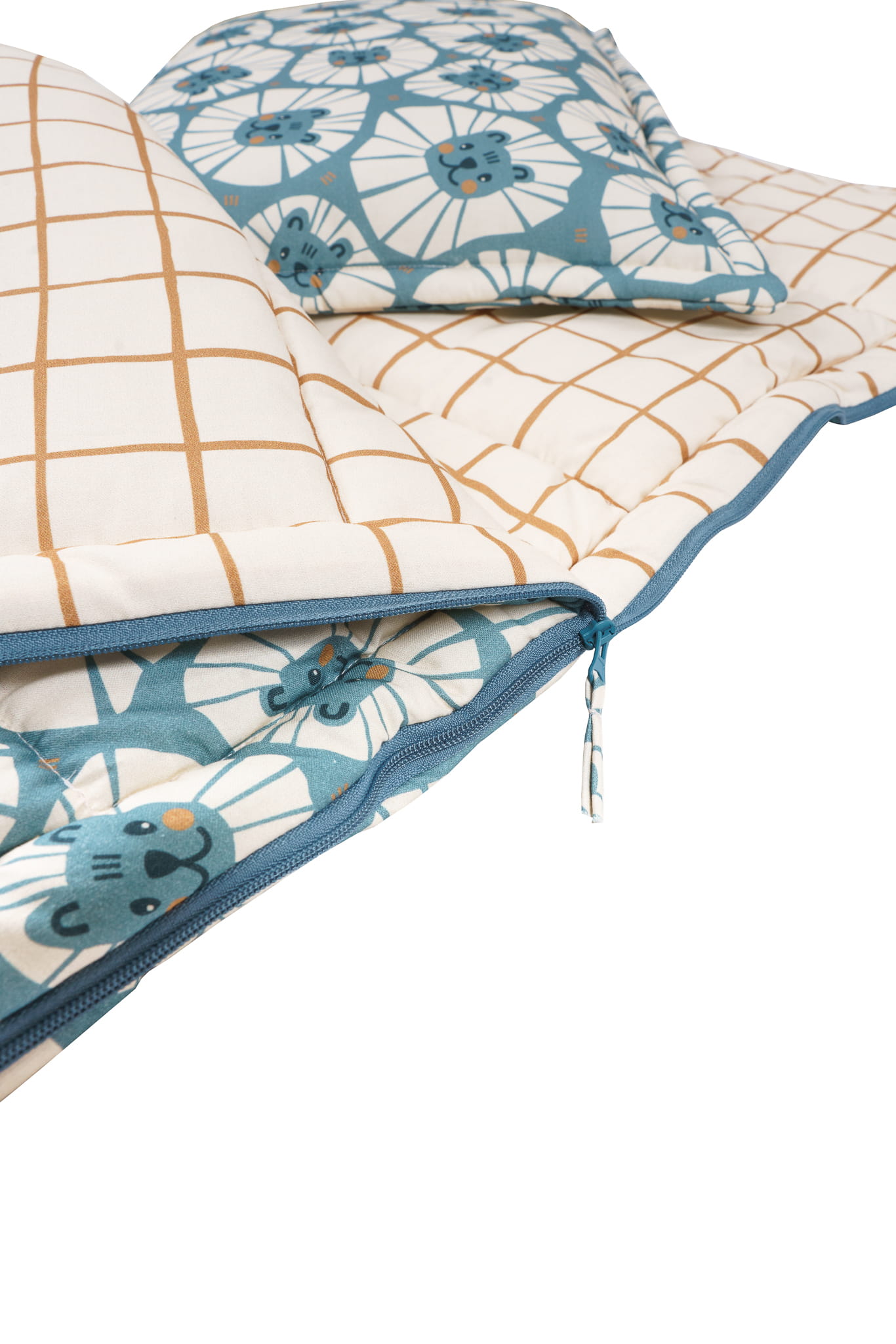 Praktyczny i komfortowy śpiwór z poduszką "Niebieskie Lwy" to doskonały wybór na drzemki w przedszkolu, wyjazdy czy noclegi u bliskich. Uszyty z miękkiej, drukowanej bawełny z uroczym motywem niebieskich lwów, która posiada certyfikat Oeko-TEX, zapewniający bezpieczeństwo nawet dla wrażliwej skóry dziecka.